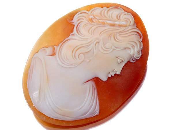 優美な貴婦人の横顔の彫刻が魅力的なシェルカメオルースを特別大放出致します!