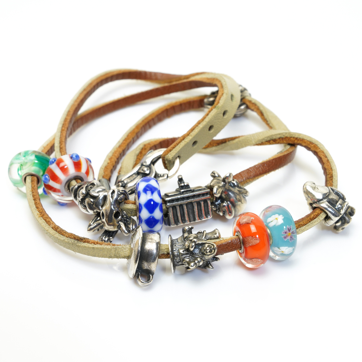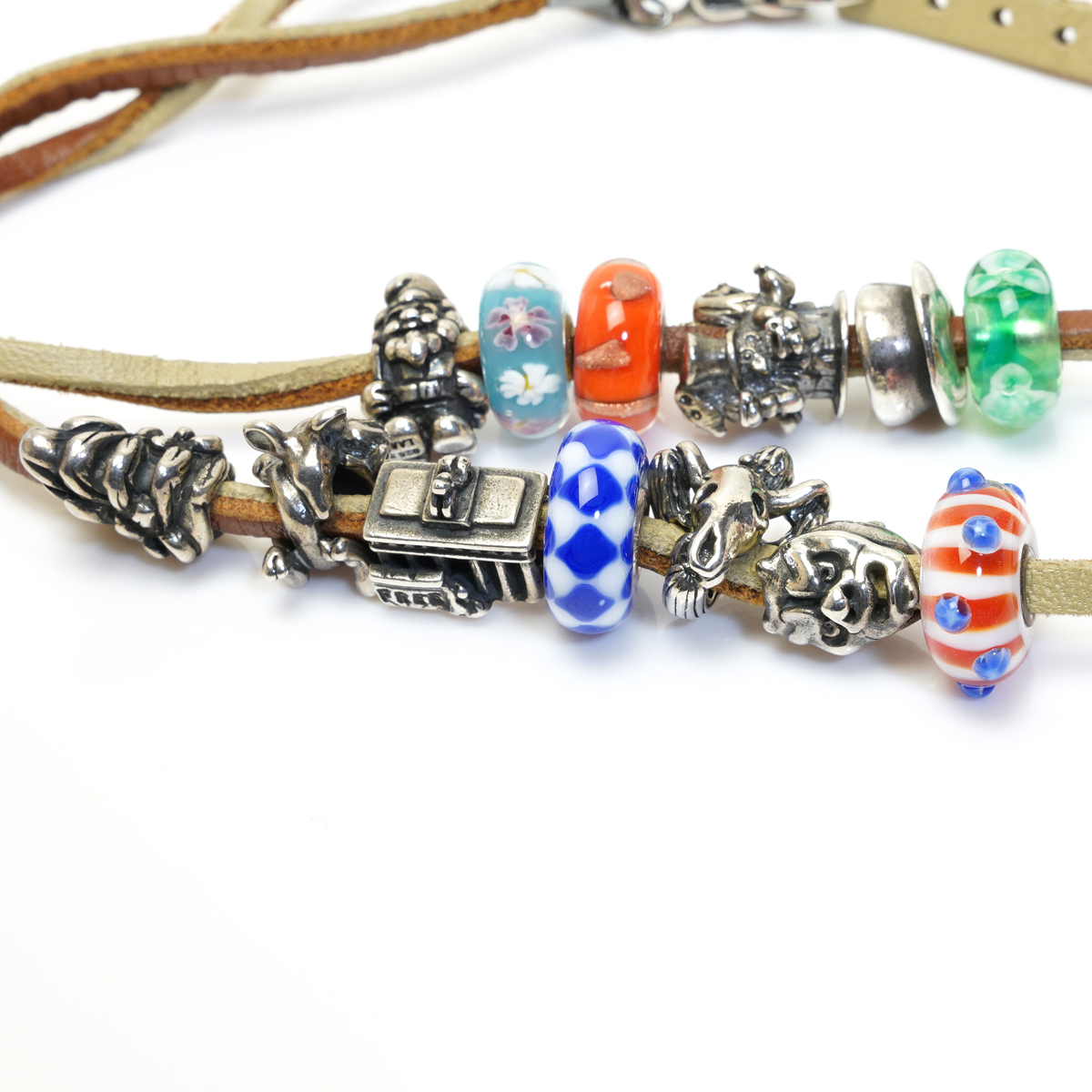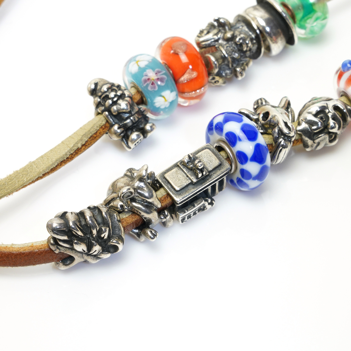 トロールビーズ 二重 レザー ブレスレット 13点セット カップ フラワー LAA 925 Trollbeads