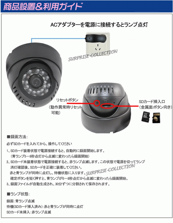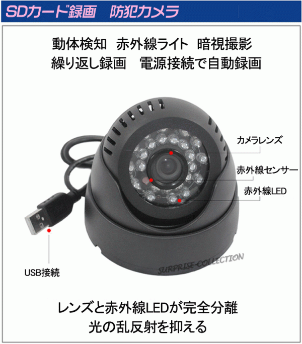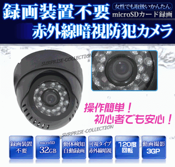 監視カメラ/SDカード録画/録音/赤外線LED/暗視/32GB対応/k802◆