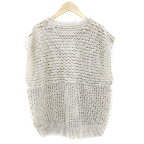 エヘカソポ サマンサモスモス ehka sopo SM2 ニット カットソー 半袖 ラウンドネック 透かし編み F ベージュ /YM32 レディース