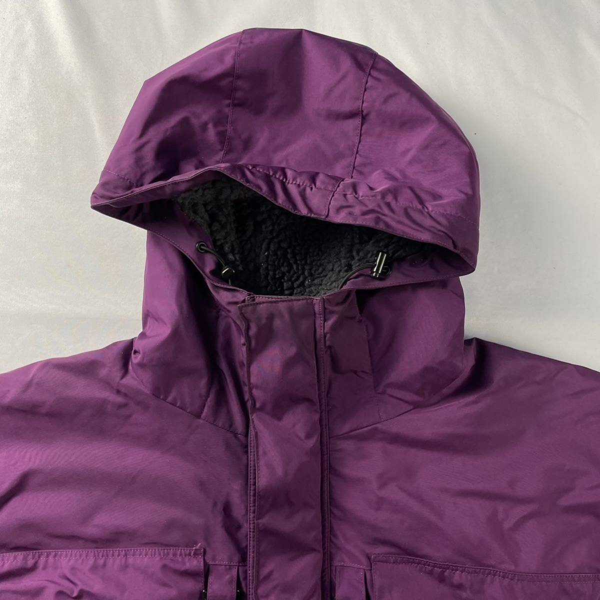 着やすい明度のパープルベースに暖かく可愛らしい内ボア、フロントの4つポケット、バックの大きなポケット、スリーブのパッチが素敵な1枚です。