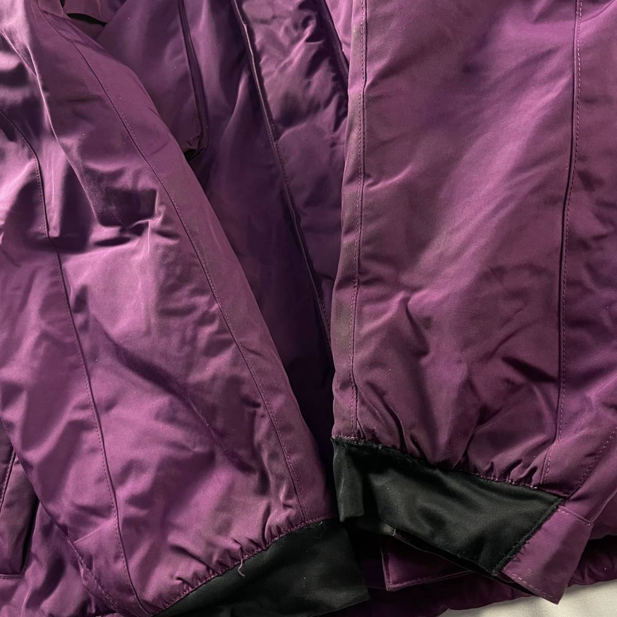ポケット周りやスリーブなどに擦れや汚れがあります。また、ポケット内側の白い部分に多少の劣化が見られ白い粉のような状態のものがところどころに付いています。通勤着や汚れても構わない暖かいアウターとしてご購入ください。洗濯に関してはハンドウォッシュオンリーです。
