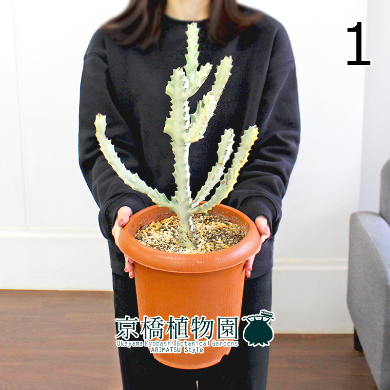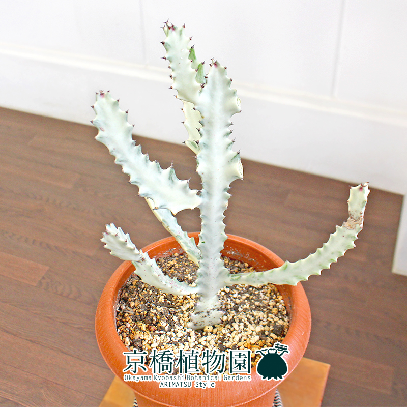【現品】ユーフォルビア・ホワイトゴースト 7号 茶鉢(1)Euphorbia lactea White Ghost