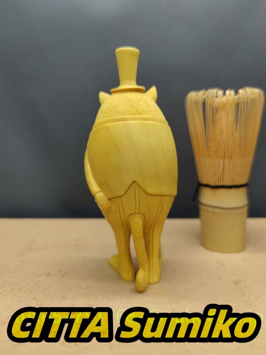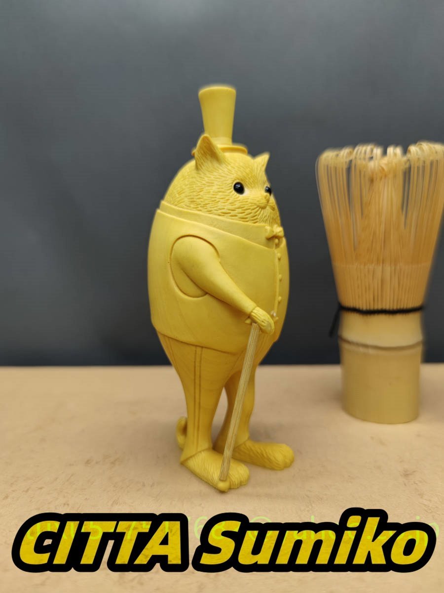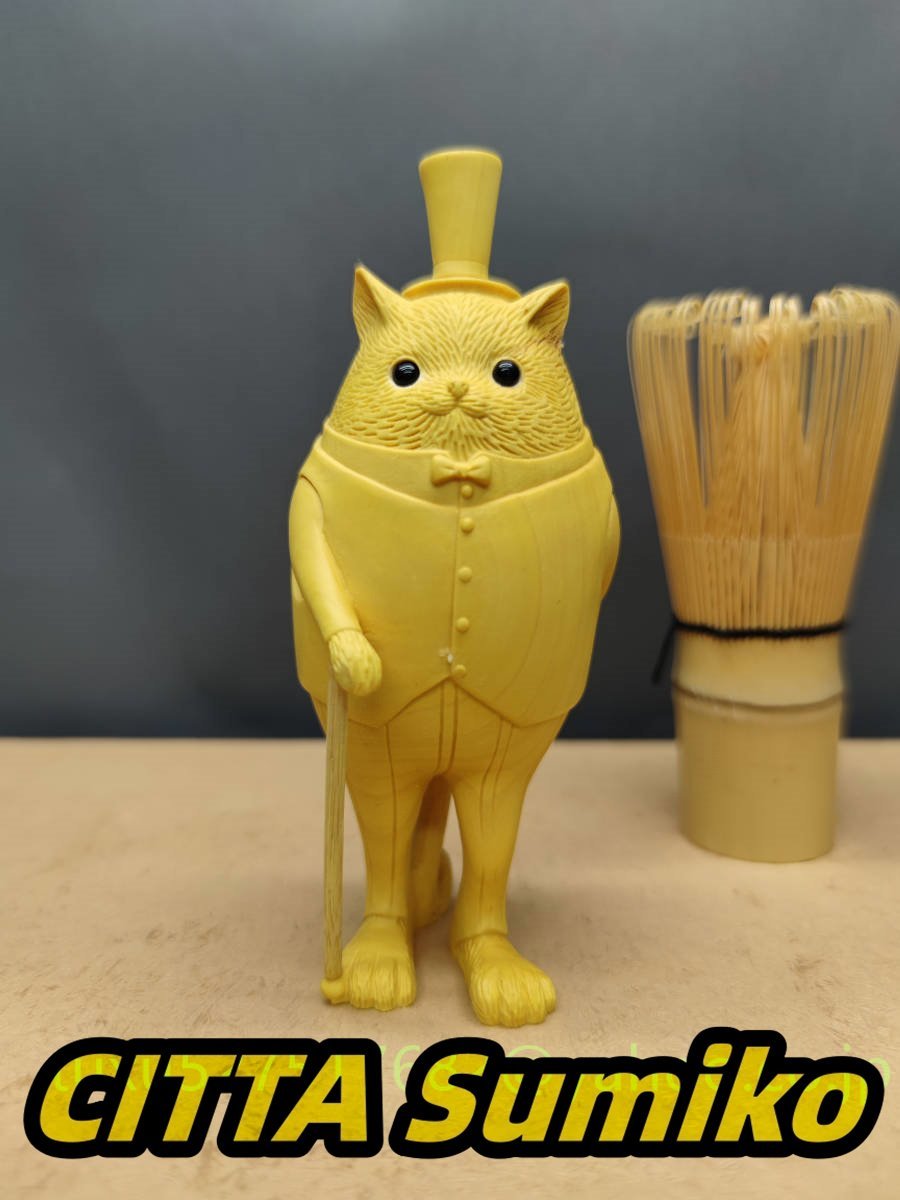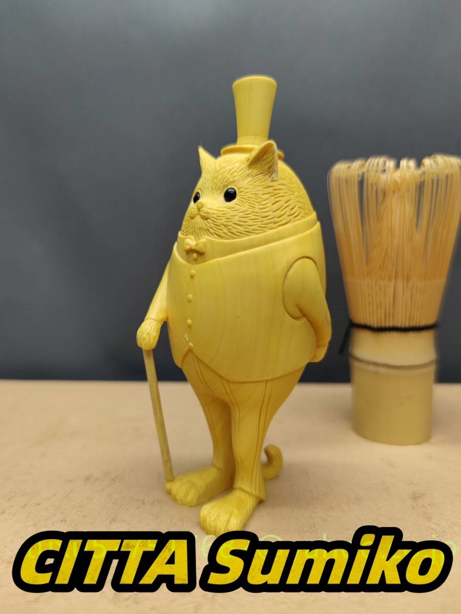 柘植材 猫の置物 楊繊細彫刻 木製 猫 置物 彫刻 人物