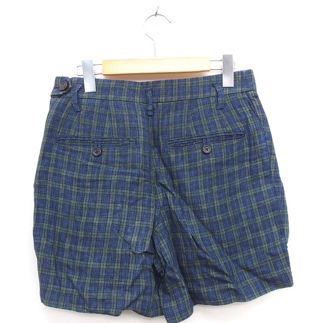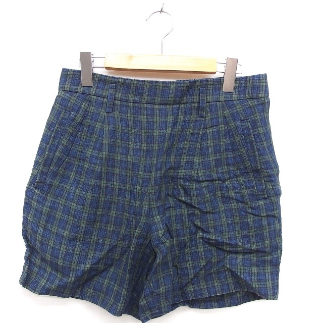 マカフィー MACPHEE トゥモローランド パンツ キュロット ショート チェック ポケット 38 リネン グリーン 緑 /C レディース