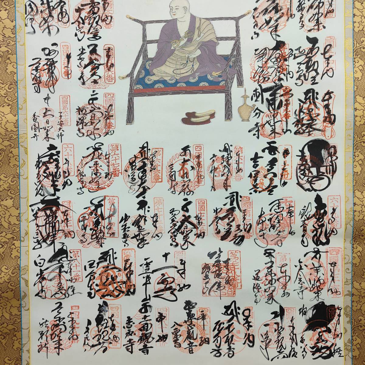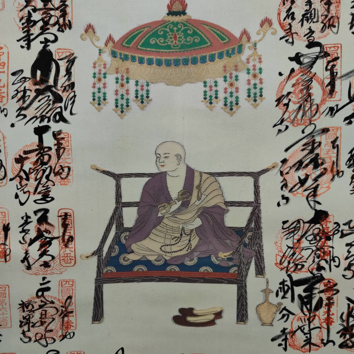 真作//四国八十八箇所/八十八ヶ所/霊場集印肉筆/弘法大師空海/織物/
