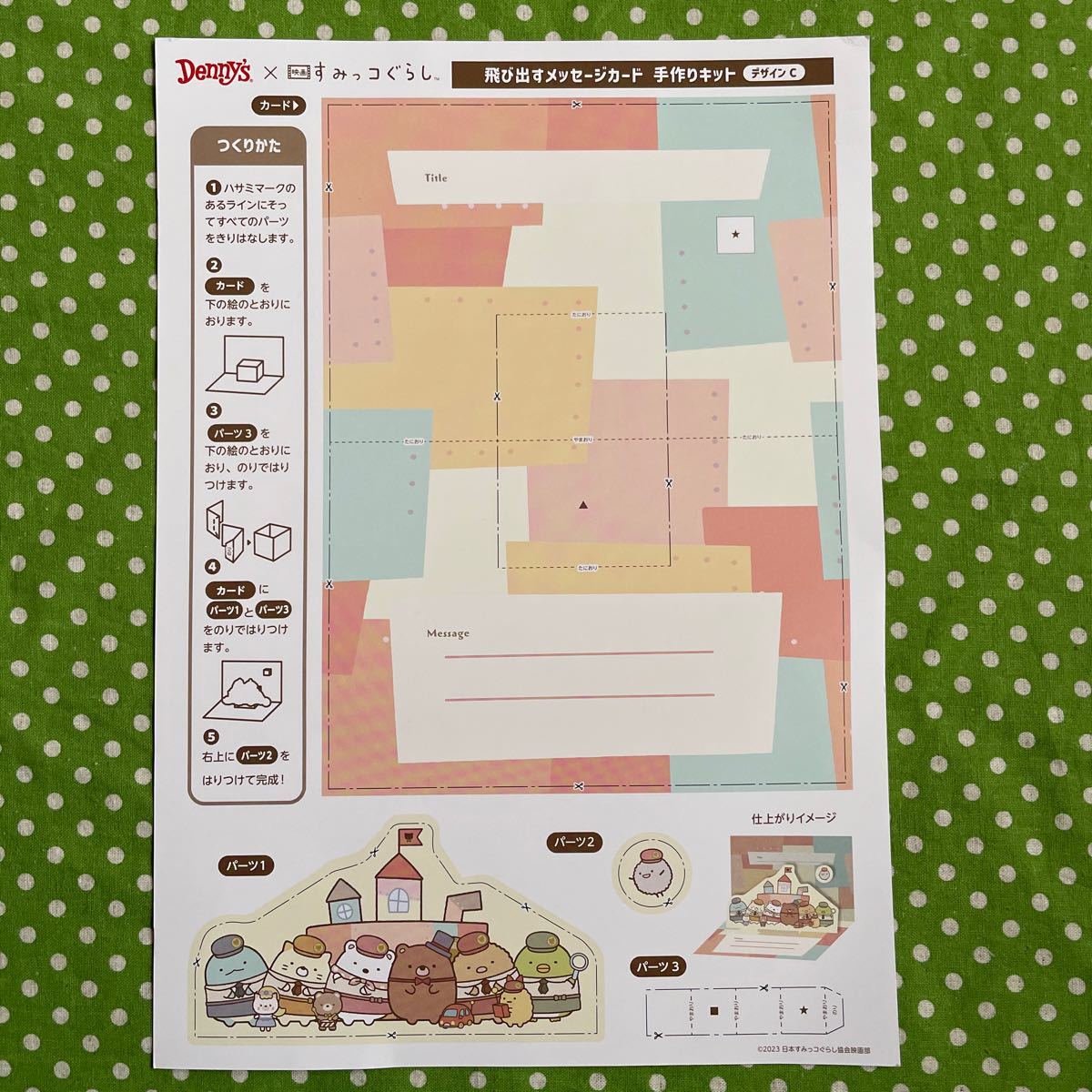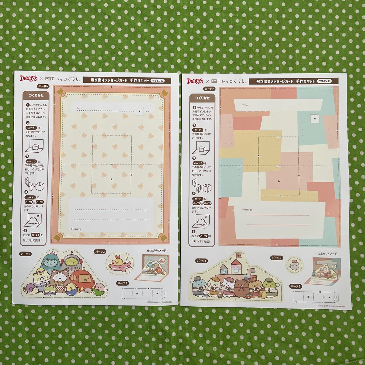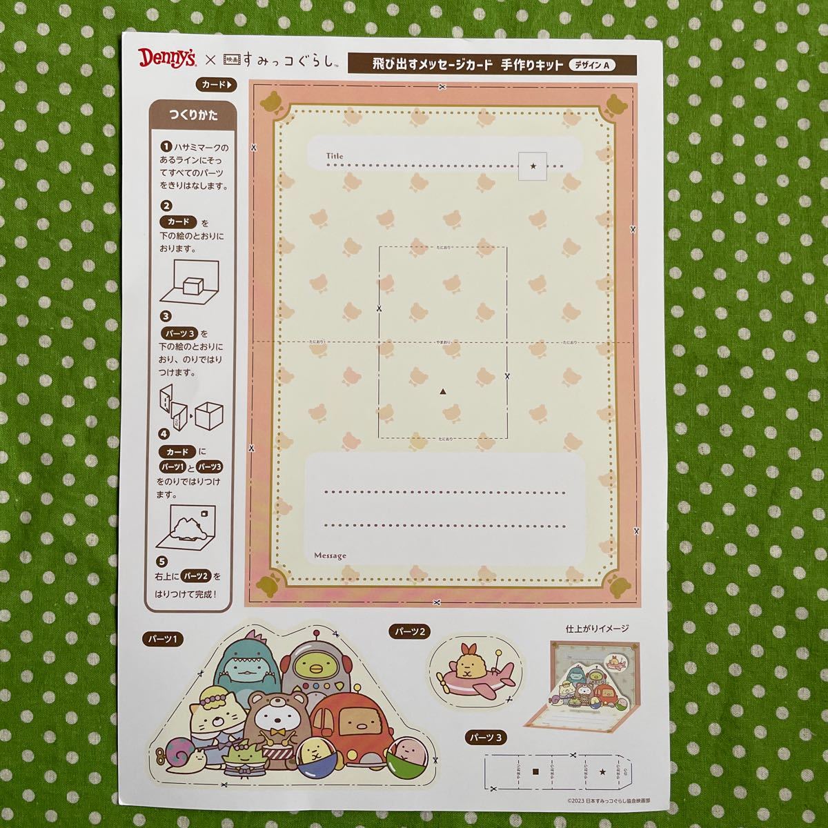 ♪Denny'sデニーズ×すみっコぐらし*飛び出すメッセージカード 手作りキット*2枚セット♪