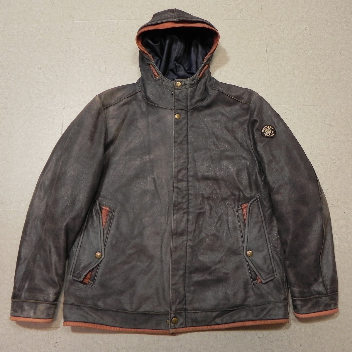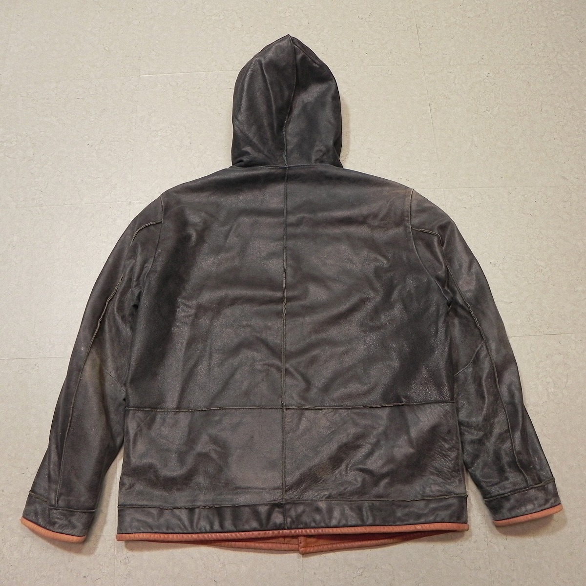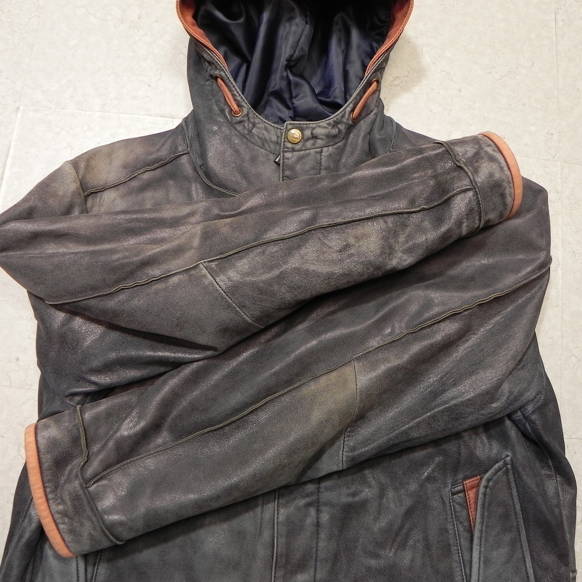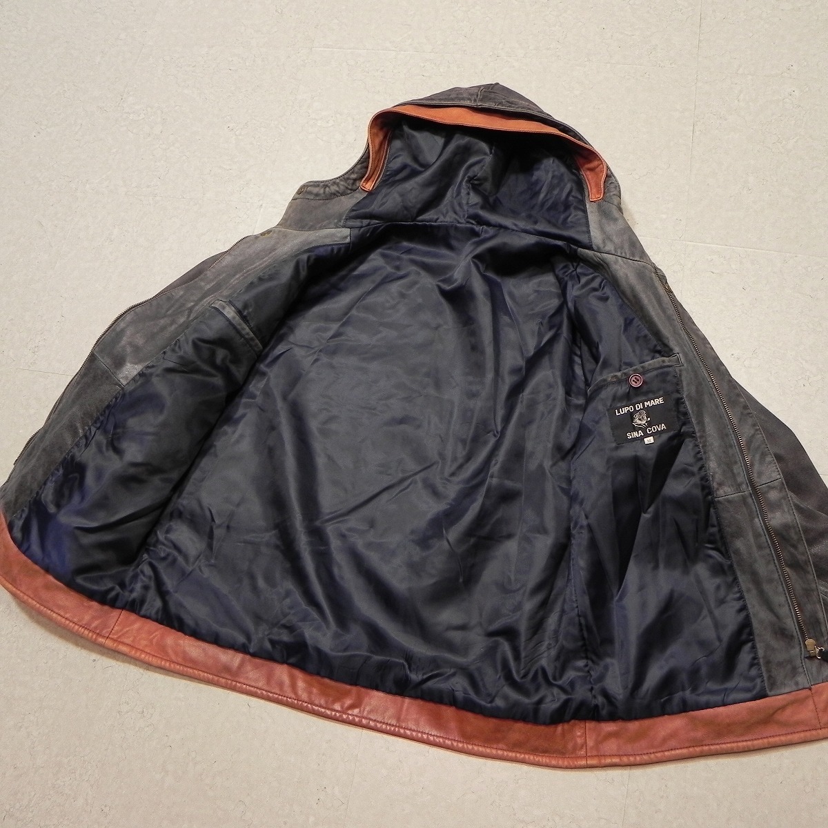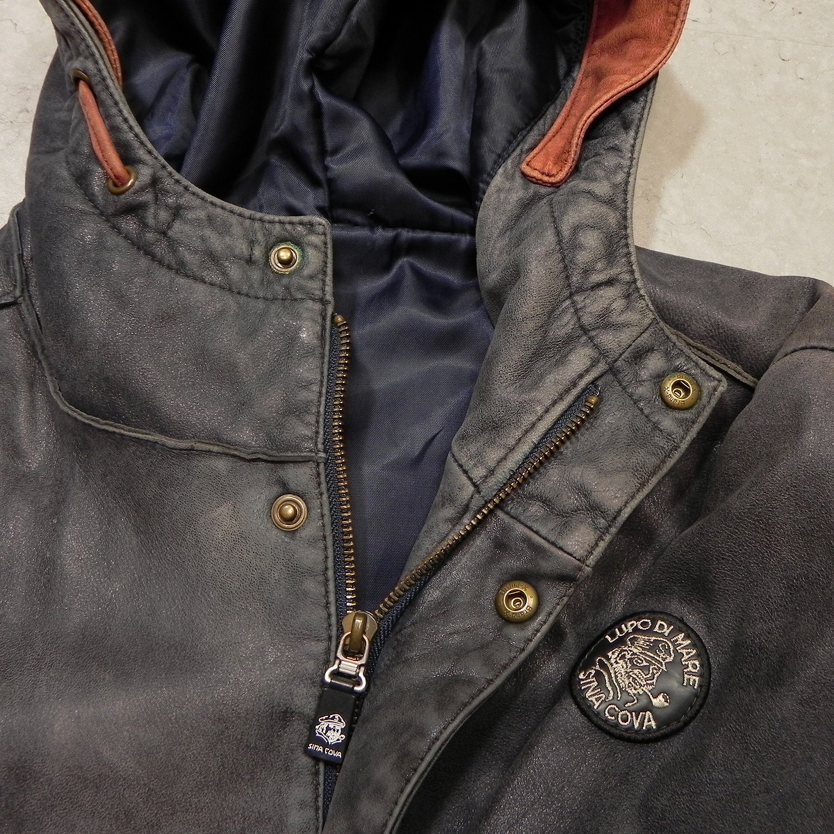 SINA COVA シナコバ リアルレザージャケット メンズM レザーパーカー 羊革ジャンパー コート フーディー 革ジャン 古着 中古 ★h
