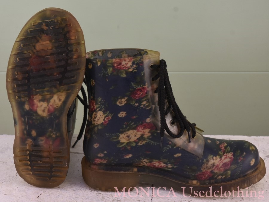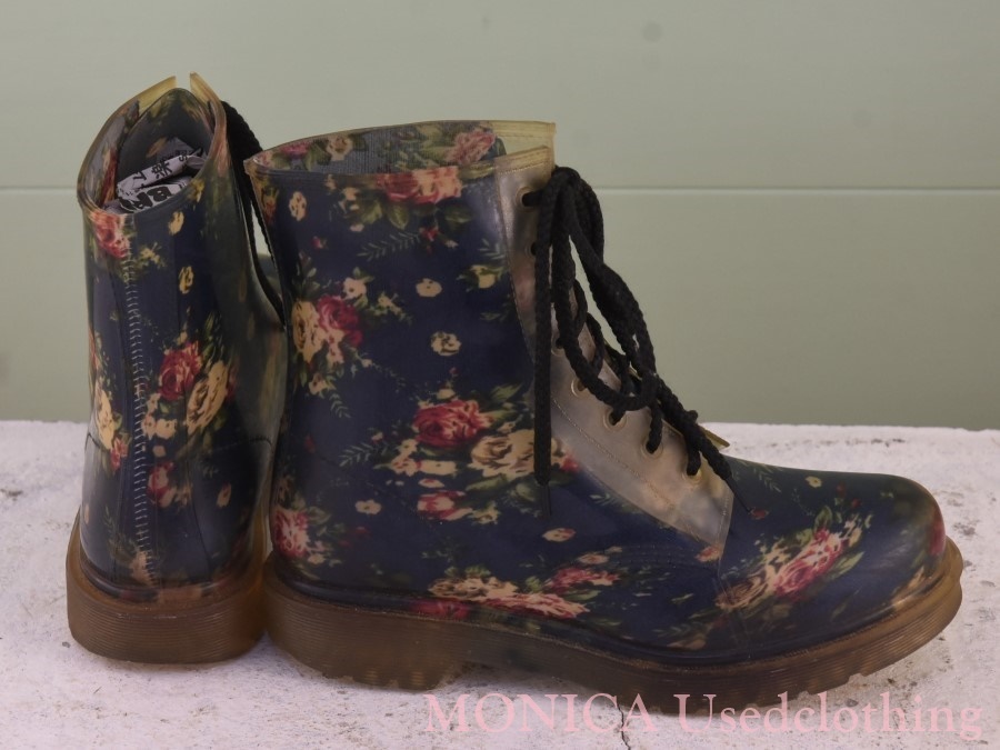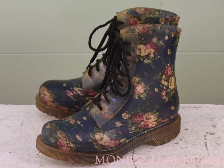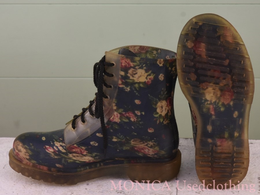 MK632◆ビンテージ【Dirty Laundry】ショートブーツ 花柄 紺 レディース 8 25cm