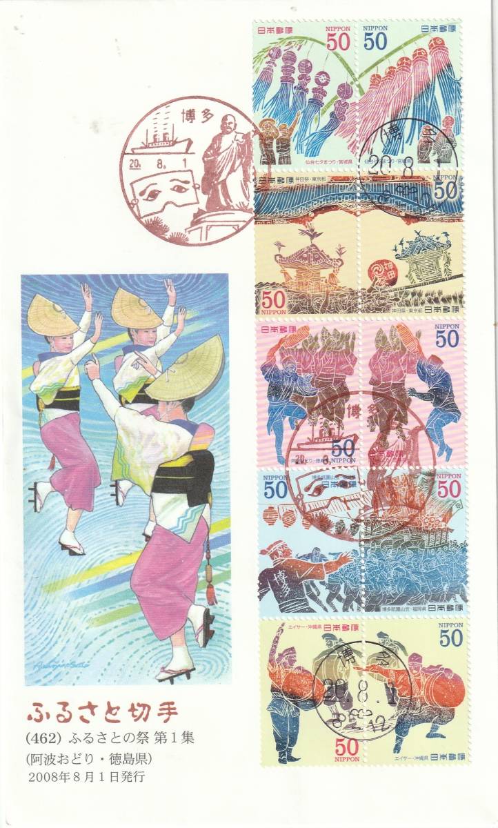 FDC 2008年 ふるさと切手  50円10貼4消し  絵佐藤照彦