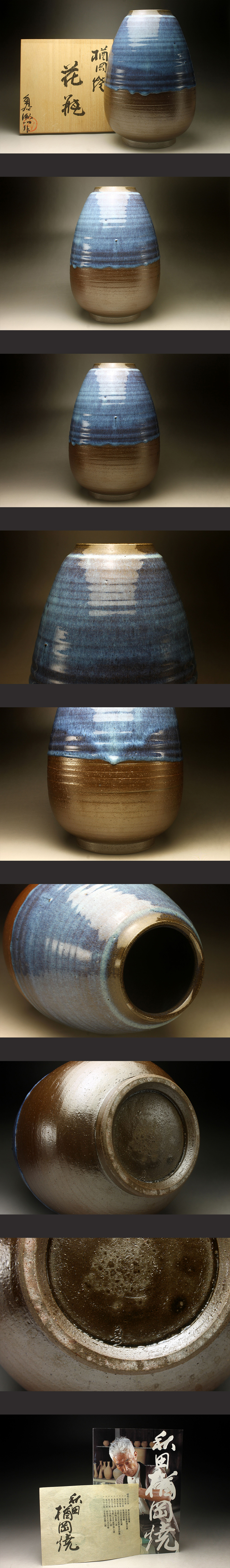 【余韻】 秋田 楢岡焼 白岩焼 掛分釉 花瓶★高さ:30cm 共箱<同梱可>
