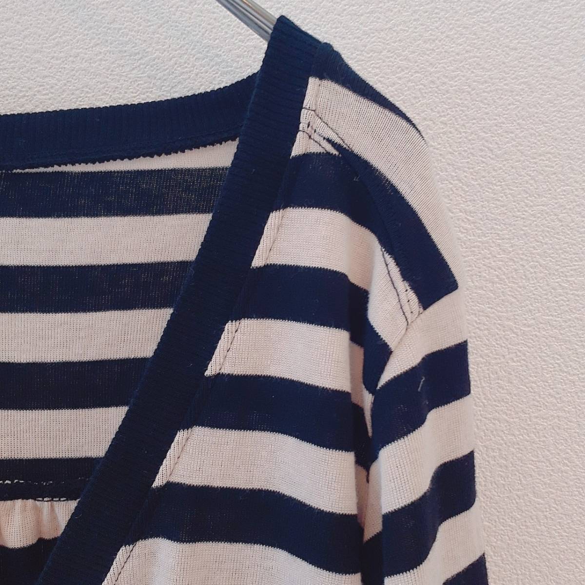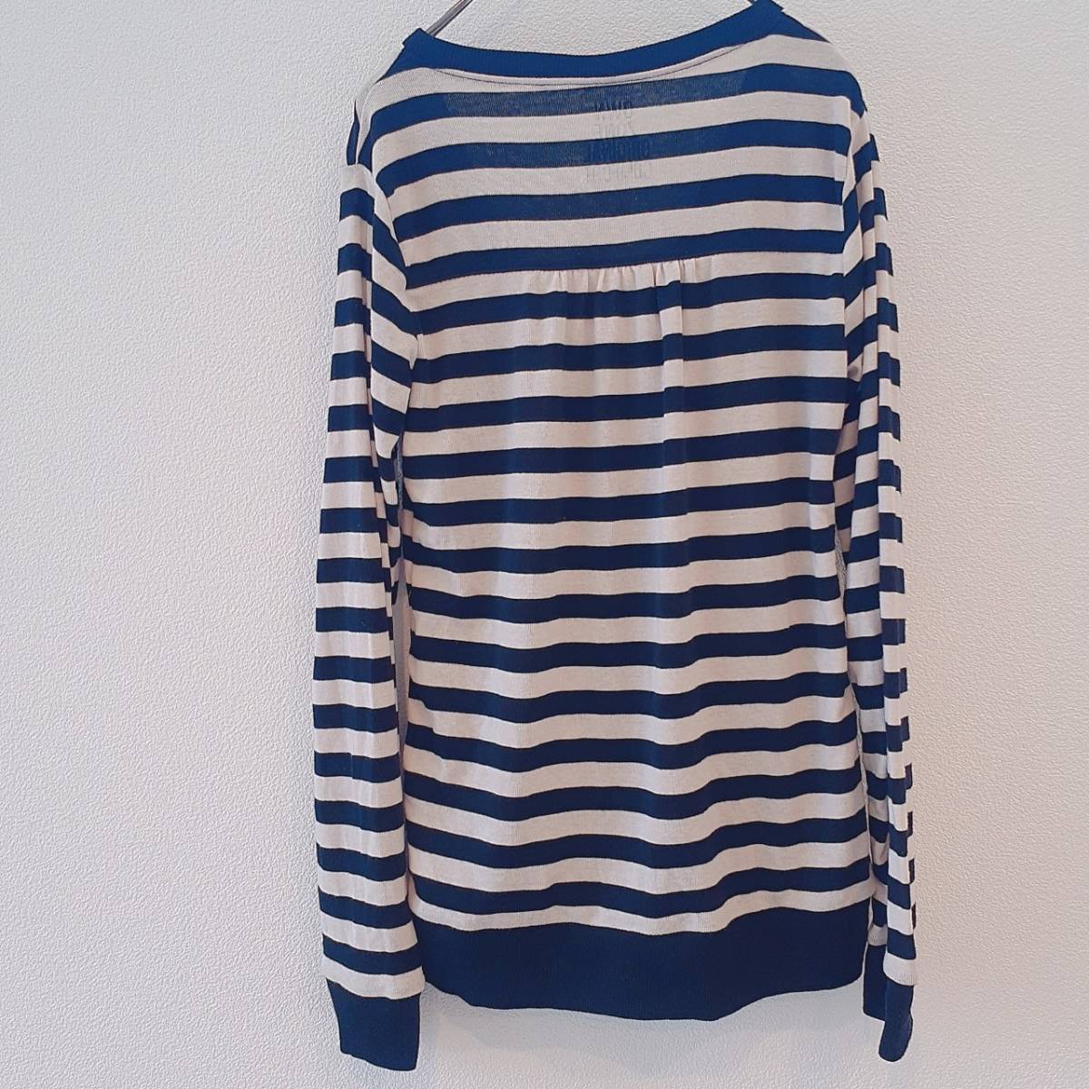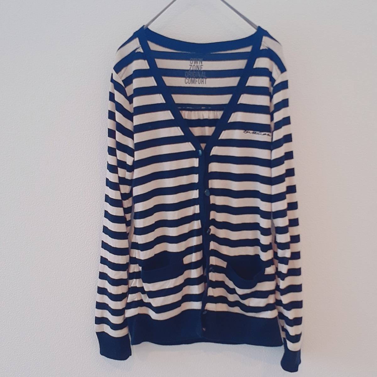 OZOC トップス カーディガン ボーダー きなり×黒 ポケット付 38 レディース |