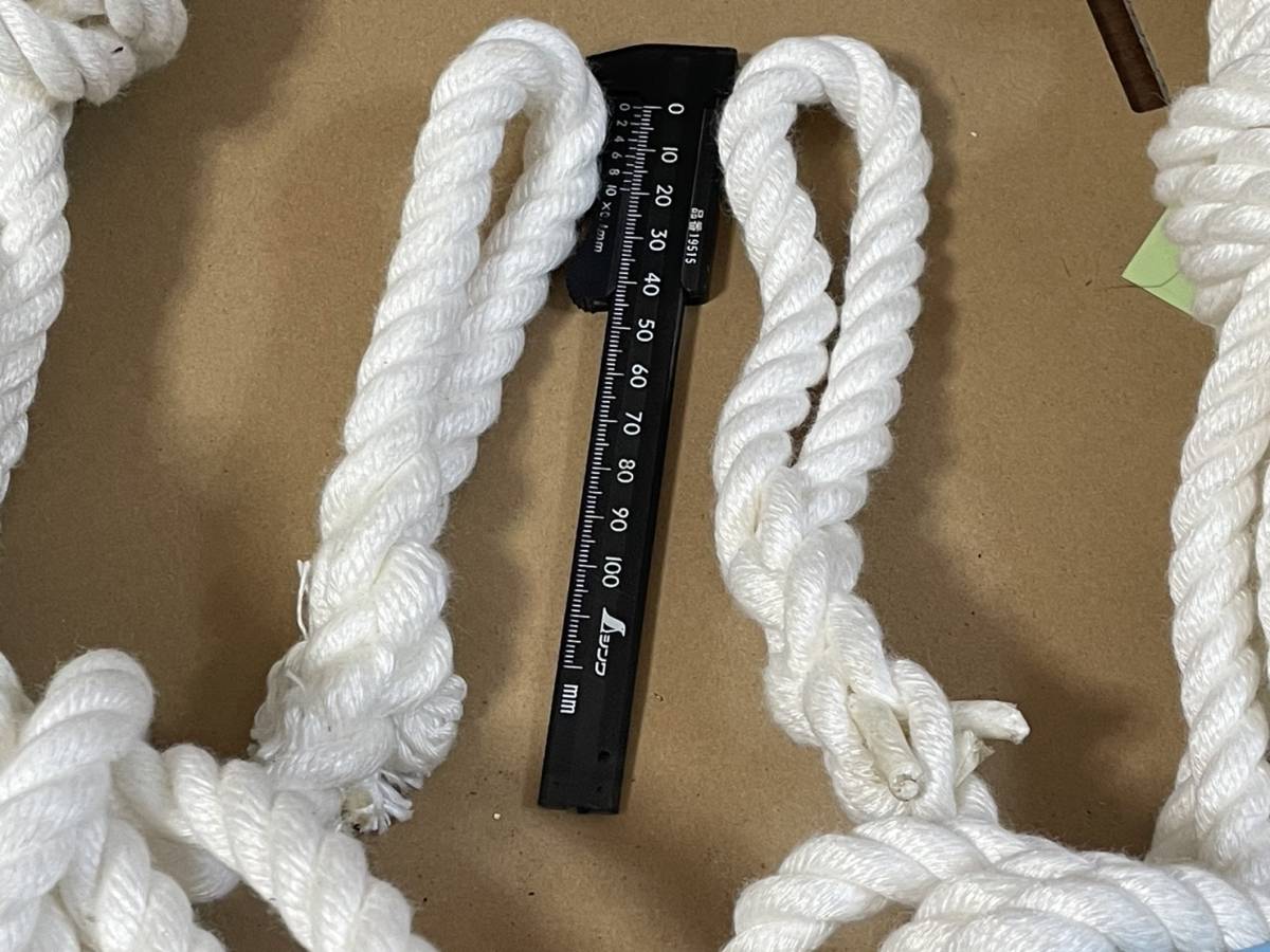 ●太さ→長さ 13mm→約4.5Mが1巻(不揃いの両アイ加工あり)/約5Mが3巻(2巻には不揃いの両アイ加工あり) 15mm→約3.5M(片アイ、片ヘビクチ加工あり)  ●重量  5巻で2.2Kg