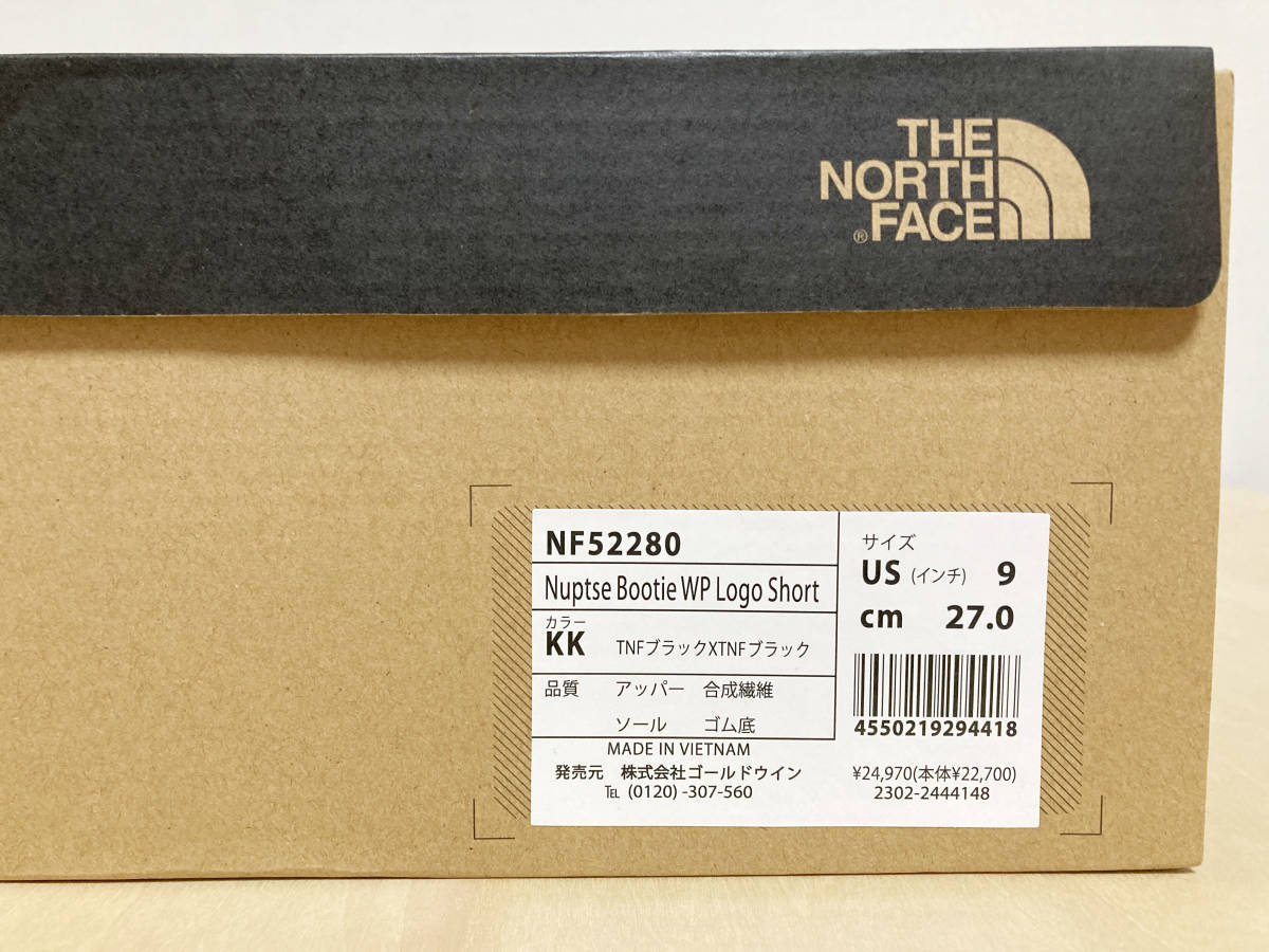 27cm 黒 ヌプシ ブーティ ウォータープルーフ ロゴ ショート THE NORTH FACE Nuptse Bootie WP Logo Short KK/TNFブラック NF52280