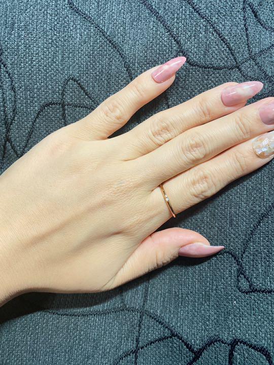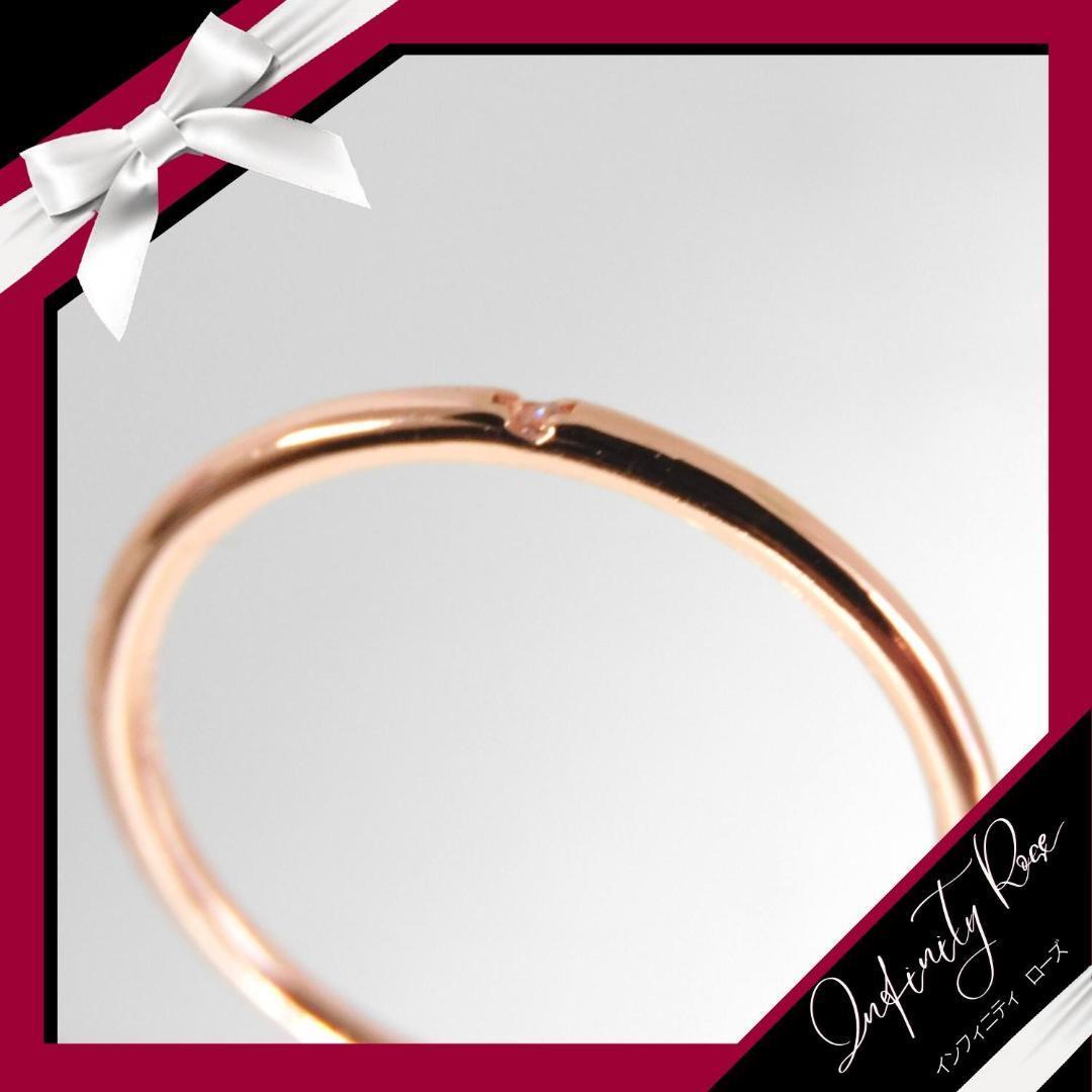 #18KGPピンクゴールドのシンプル一粒細大人の指輪