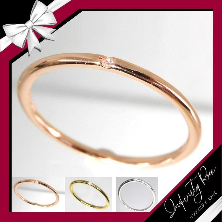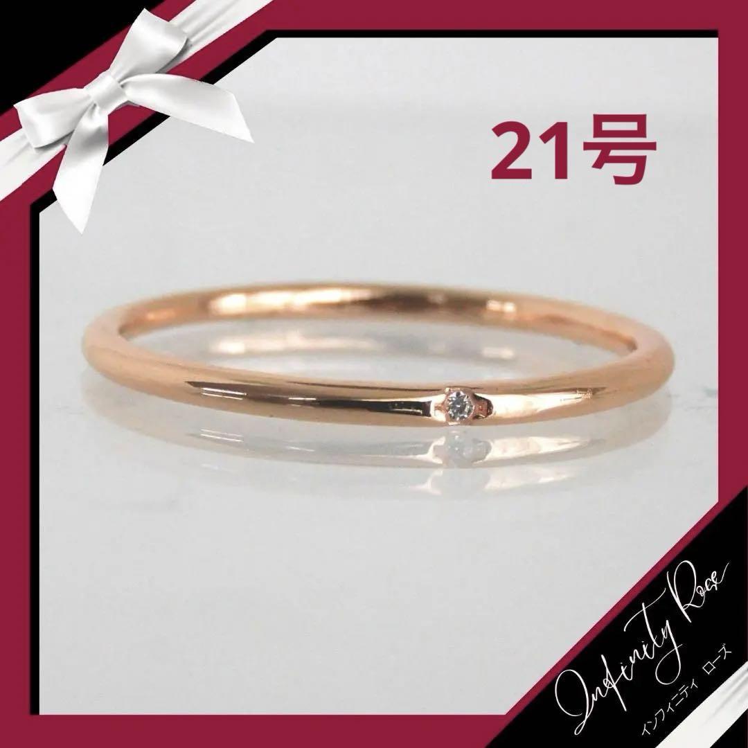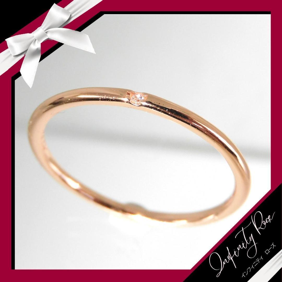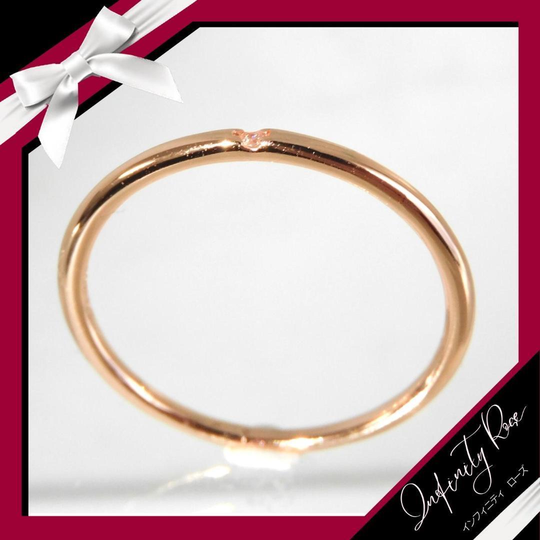 (R009P)21号 18KGPピンクゴールドのシンプル一粒細大人の指輪 リング