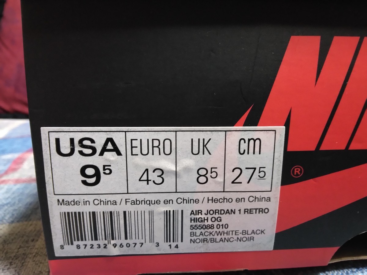 エア ジョーダン1 NIKE AIR JORDAN 1 RETRO HIGH OG BLACK/WHITE-BLACK US9.5 27.5cm 新品未使用 黒タグ 国内正規 555088-010 パンダ PANDA