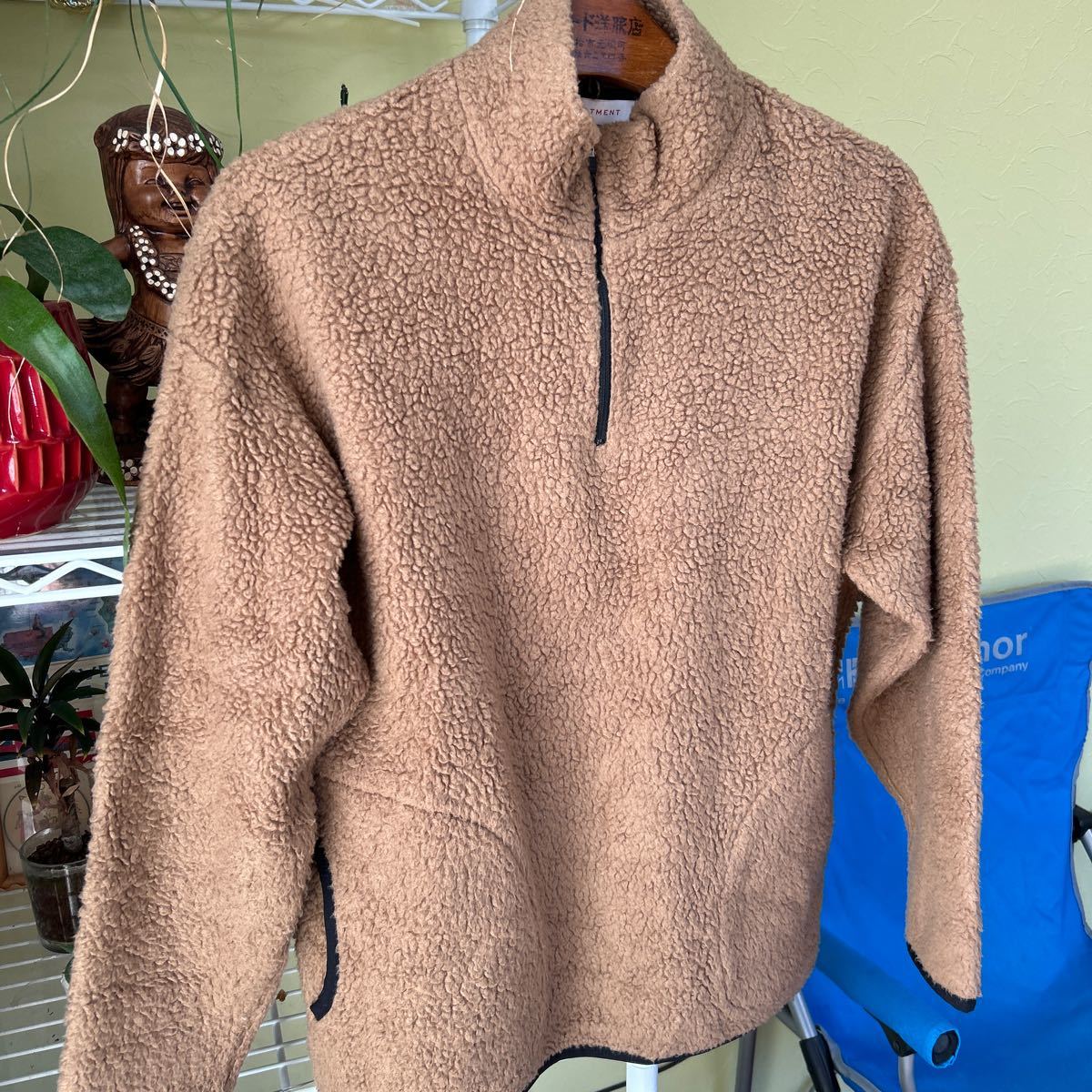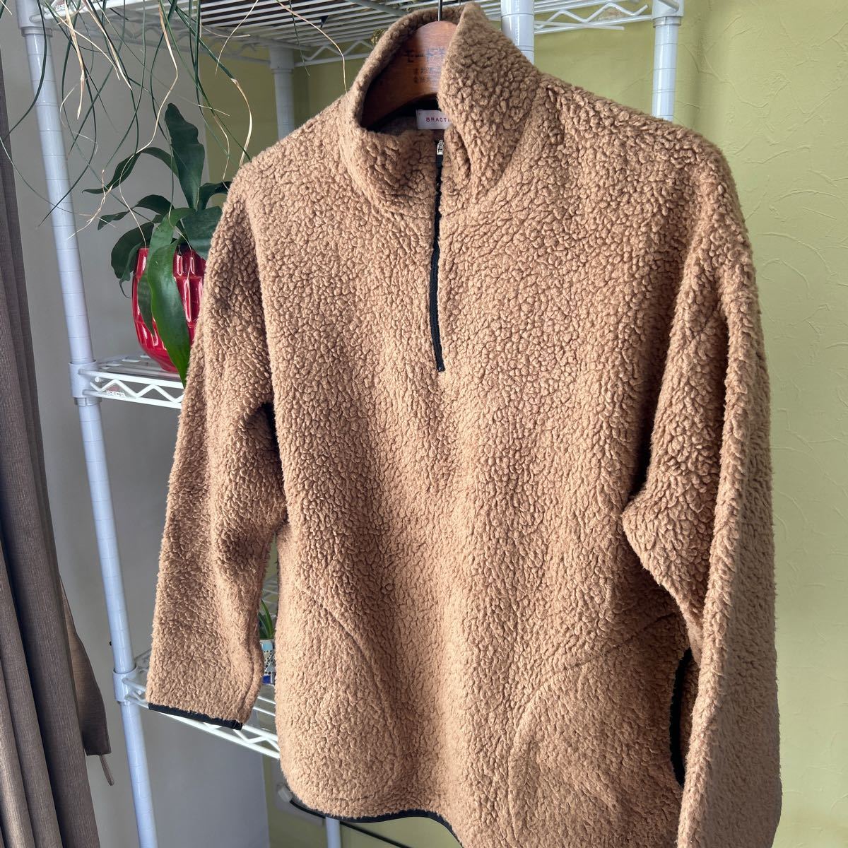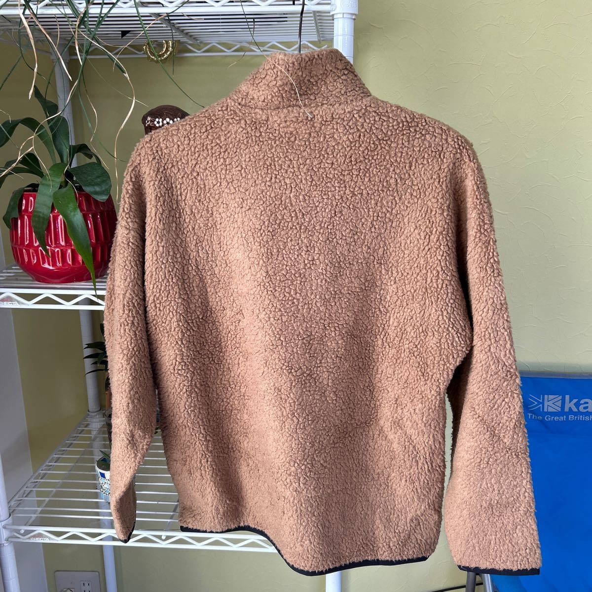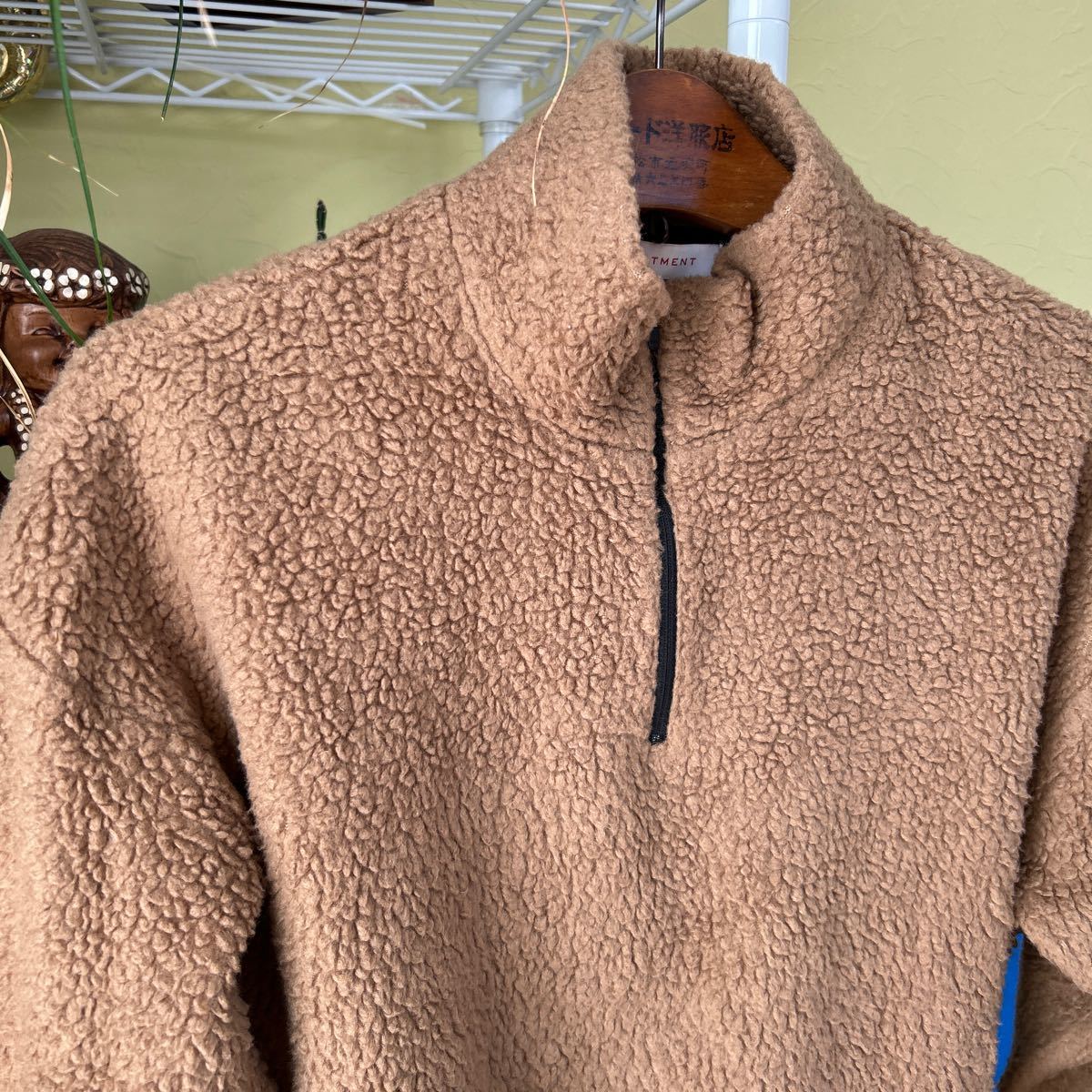 袖丈50(脇下縫目〜袖先端)。多少の誤差はお許しください。良い雰囲気です。日本製 アクリル 毛 ポリ混紡の毛足がモコモコしたレトロフリース プルオーバー できる限りダメージは説明させていただきますが、こちらが気づかない程度のわずかなしみ、よごれ、
