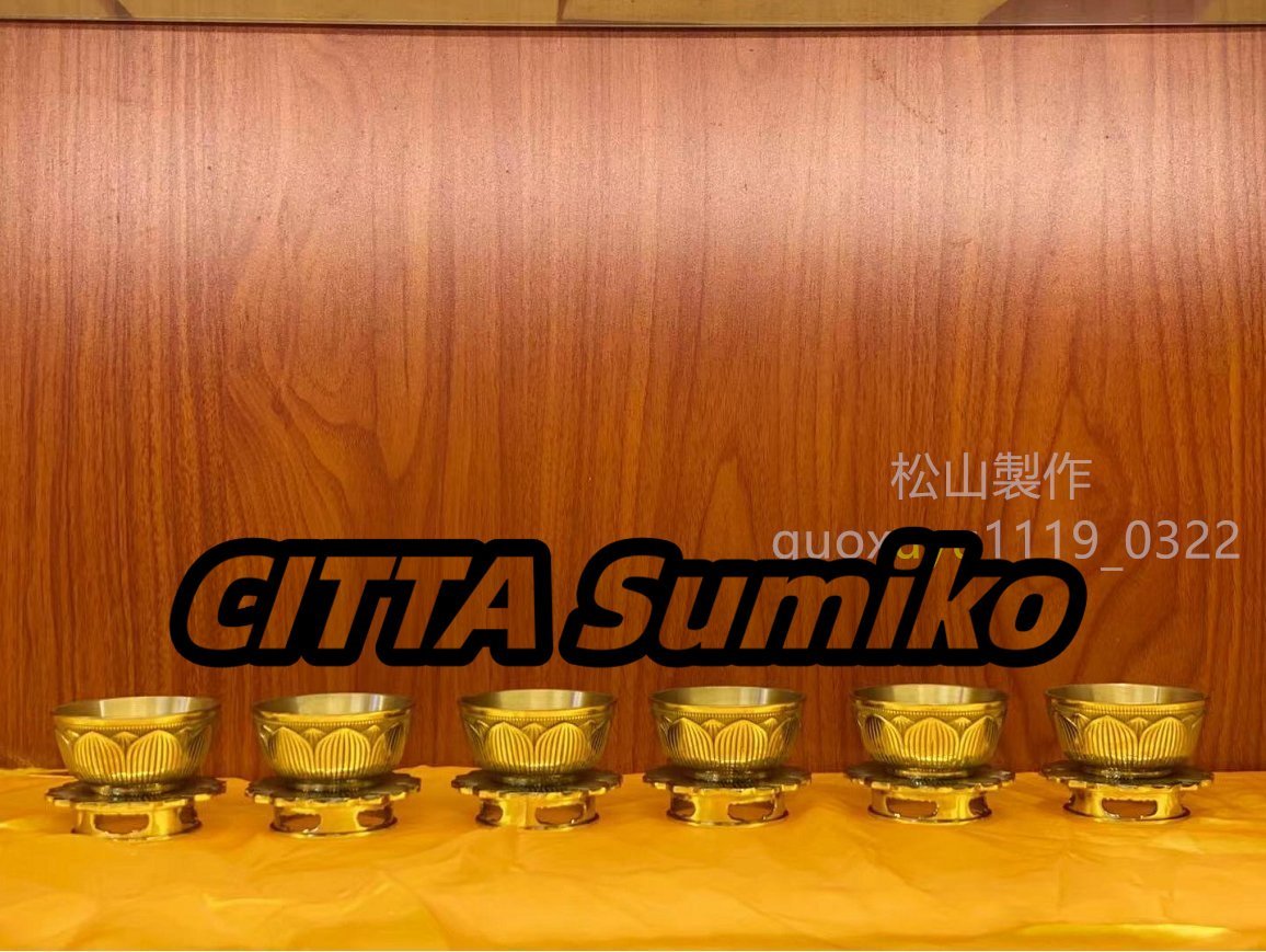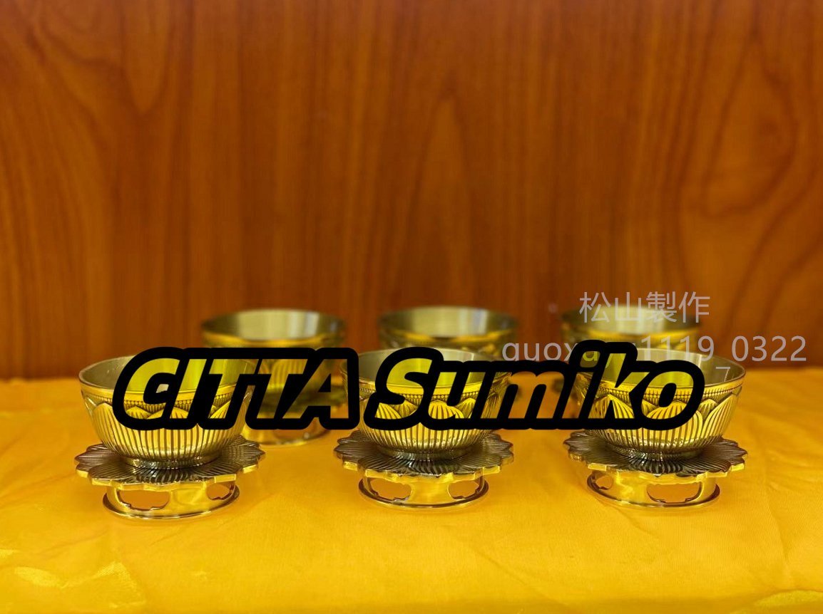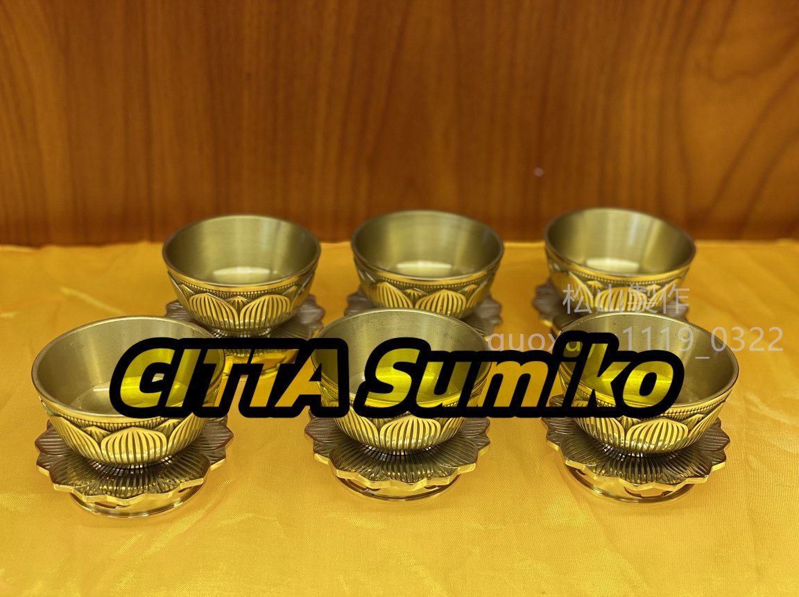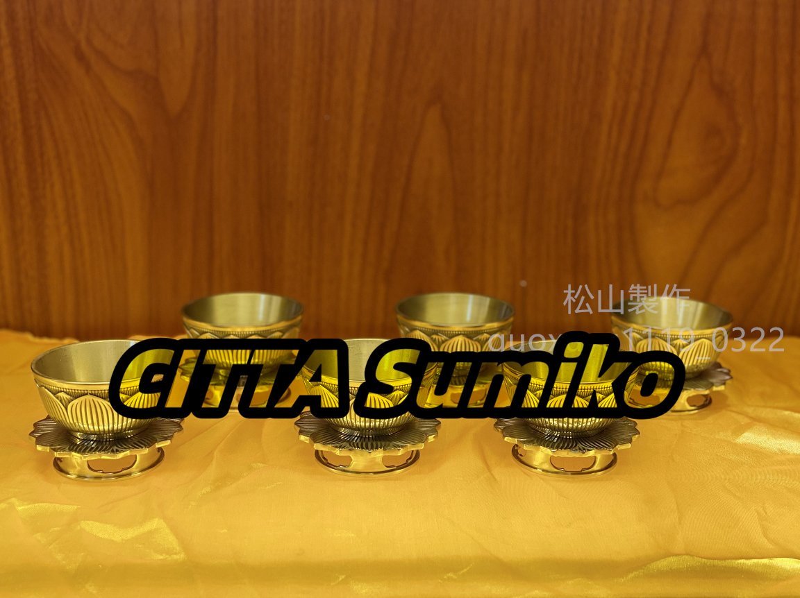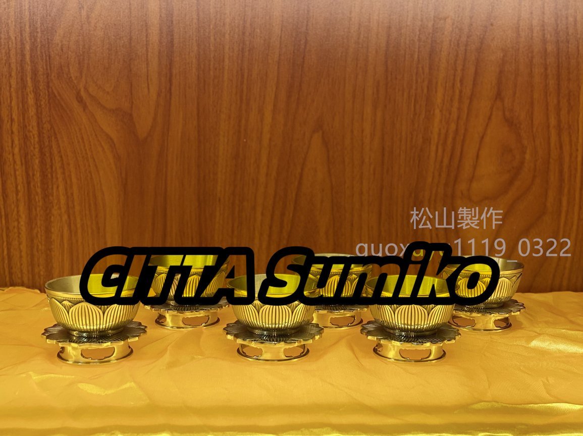 「密教法具 寺院用仏具」美品 別上筋彫前具 六器一組セット 真鍮製磨き仕上げ
