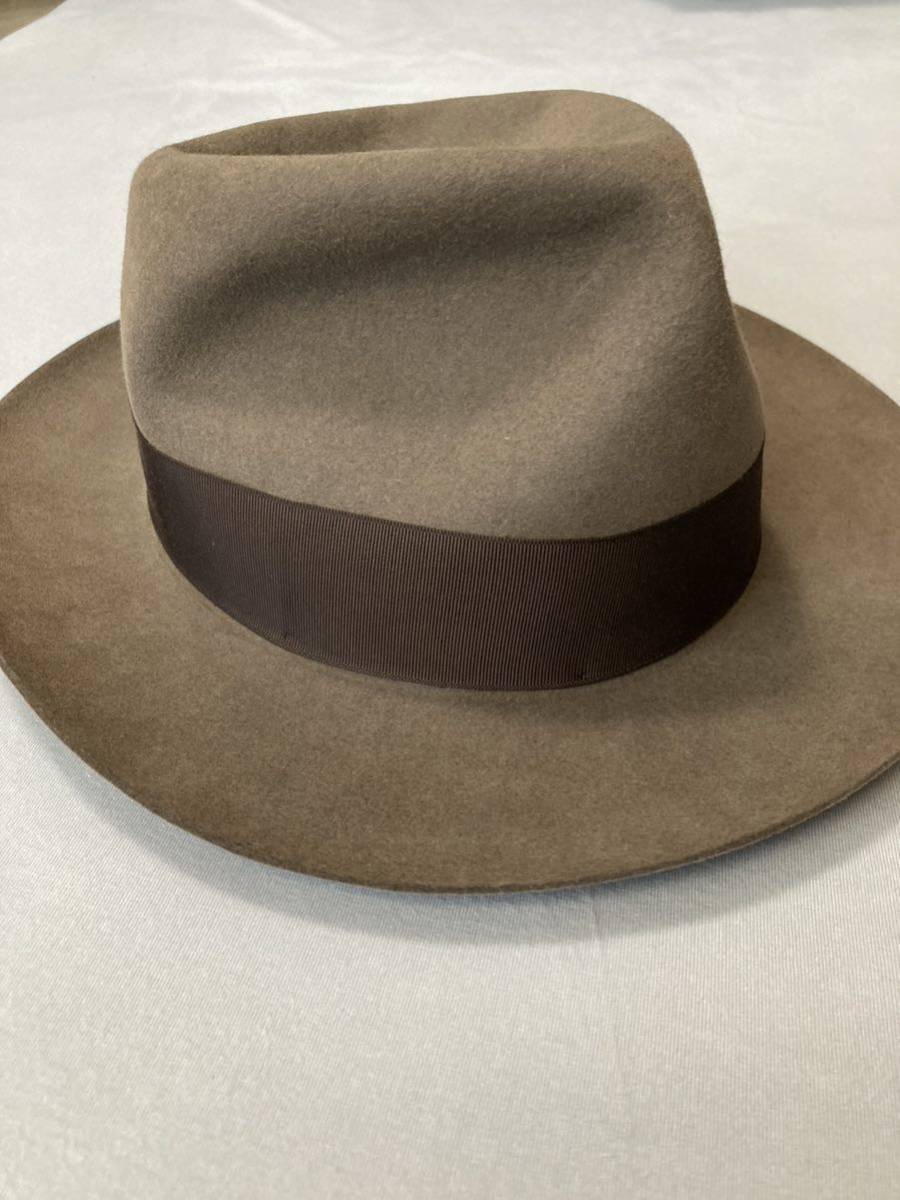 サイズ表記7 1/2で、内周は素人採寸59から60cm程度です。誤差はご了承ください。同じくイギリス製のHerbert Johnsonの7 5/8を愛用する者にはややタイトに感じます。