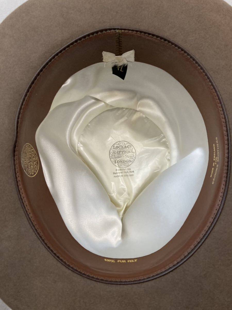 ブルックスブラザーズ別注イギリス製James Lock&Coのハットです。ややツバ広めのかたちの良いダークブラウンで、革製スベリにはBB別注の金刻印が輝きます。ハット専門店で購入した時は1970年代製とのことでした。