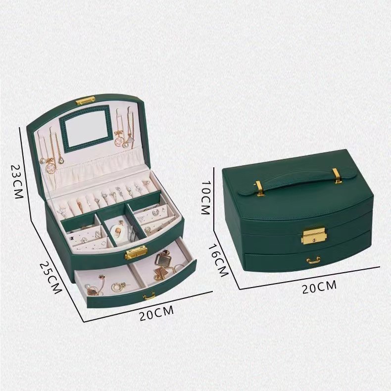 ジュエリーケーストップ層は指輪、宝石、ネックレス、イヤリング、ピアス、アクサセサリーなどの各種類の小物に合わせるスペースを持っています。 これらはこの可愛い収納ケースに入れられます。 そして、ピアスに載せるところが自由に開閉できます。下層はブレスレット、腕時計なども収納できます。 【高品質素材】 上質なPUレザーと柔らかいベロア裏地から作られています。魅力的な外観と耐久性を持っています。デザインが高級でおしゃれ、細部に至るまで精巧なジュエリーボックスです。金属の安全ロックがあり、ジュエリーなど貴重品を安全に保管できます。大切なジュエリーが傷をつけないように、ジュエリーの置く場所に柔らかいベルベット生地で作られています。たとえ髙いところから落下しても中にあるジュエリーも損壊になりません。 【使い勝手】 女の子にぴったりのファッショナブルなトラベルジュエリー収納ボックスです。 持ち運びに便利なハンドルデザインで、サイズが小さいので場所を取らず、ジュエリーをホコリや傷から守ります。