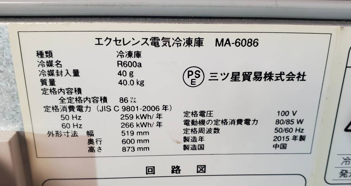 「北海道千歳市 発」 エクセレンス 冷凍庫 引き出しタイプ 製造年2015 「直接引き取りも可能です」