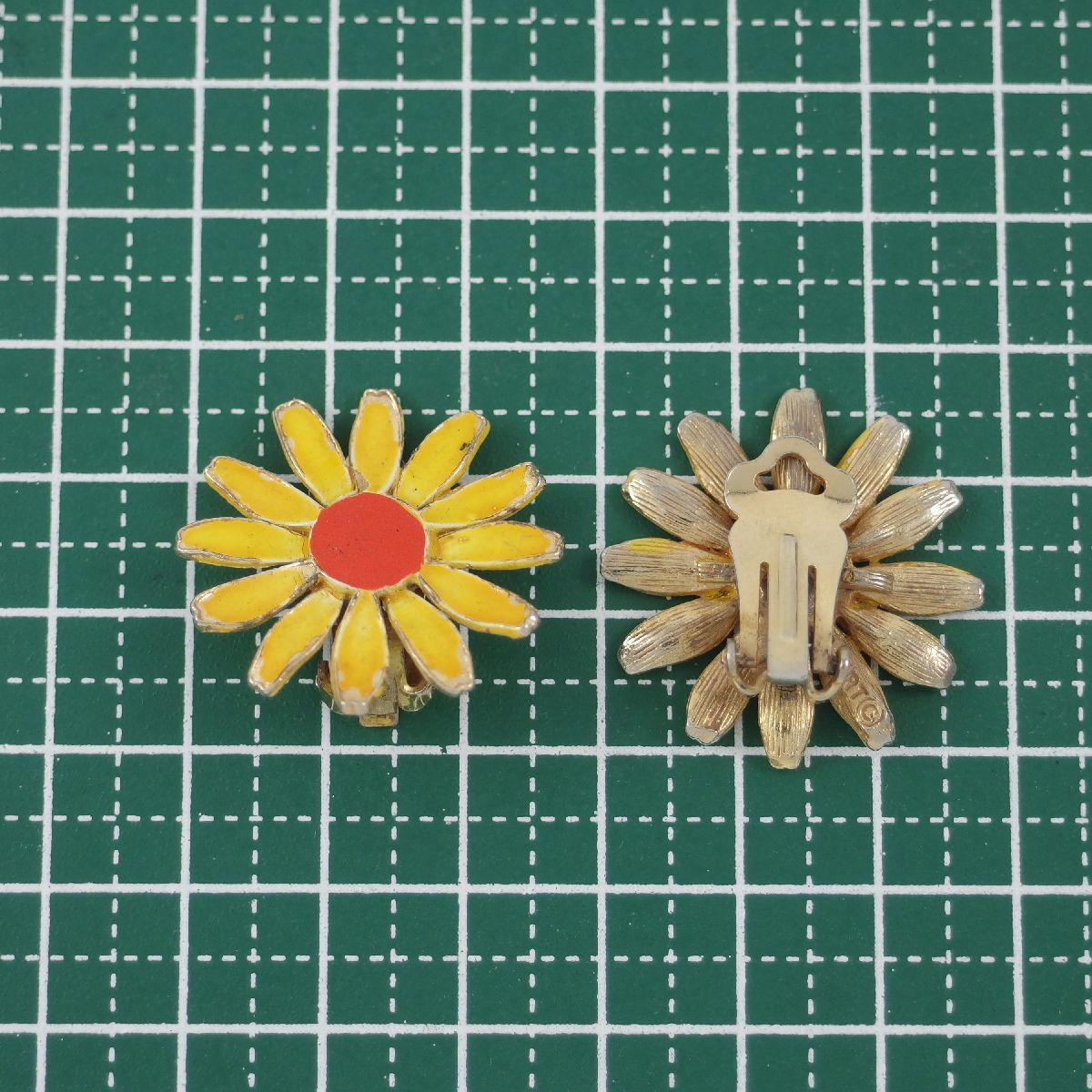 A9518◆【ART】◆ 黄色い花 フラワーモチーフ ◆ ヴィンテージイヤリング ◆