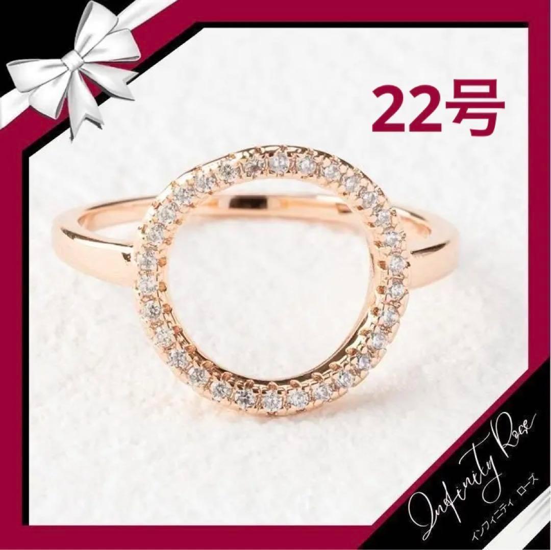 (R015P)22号 ピンクゴールドクリ抜きお洒落なまんまるクリスタルリング