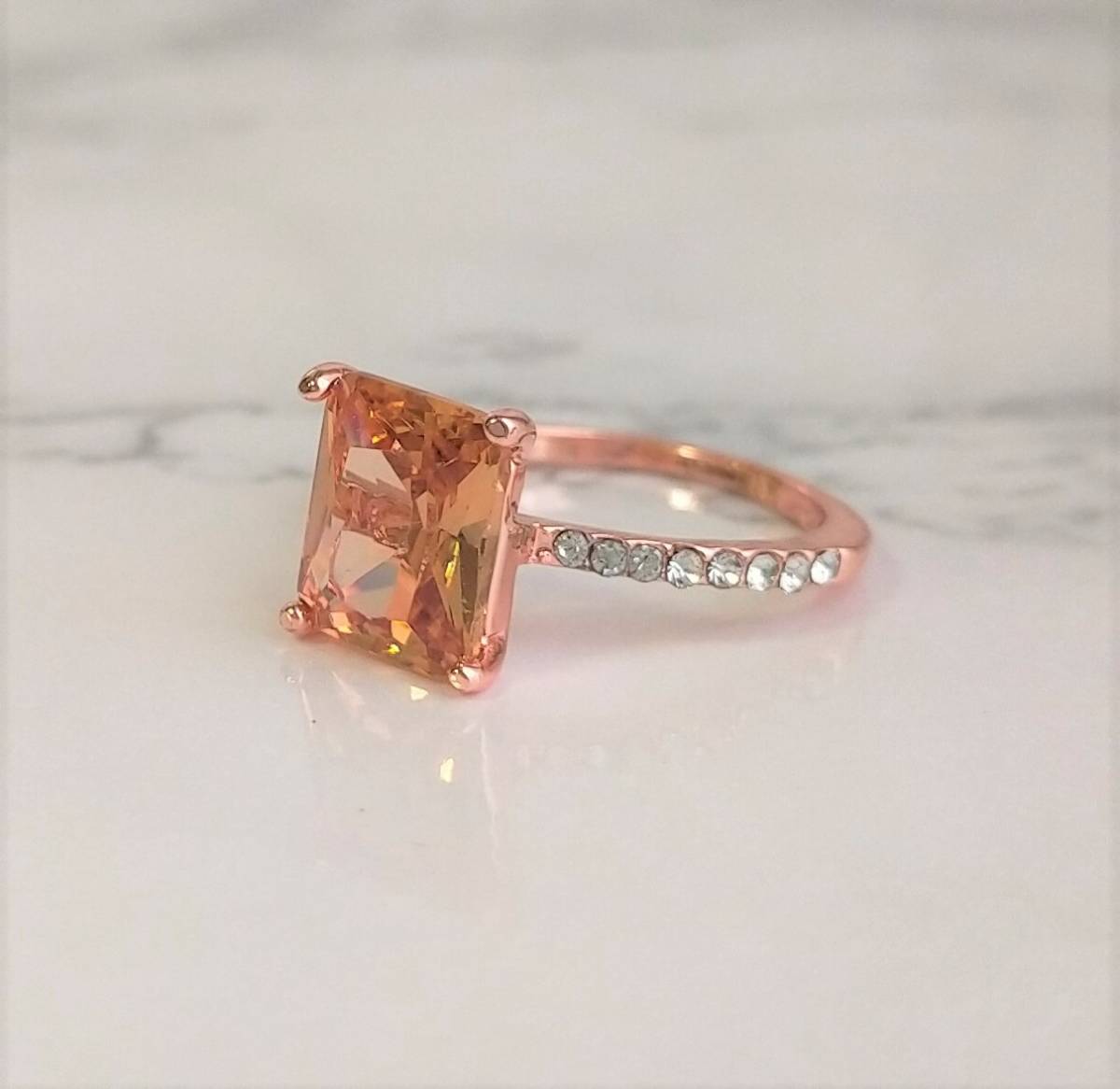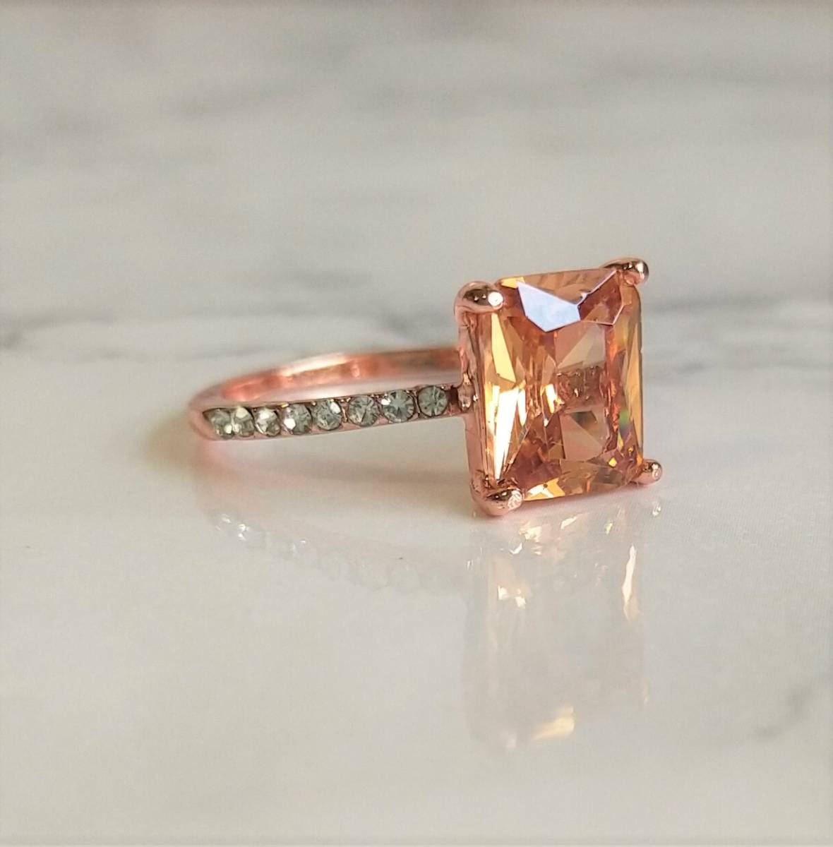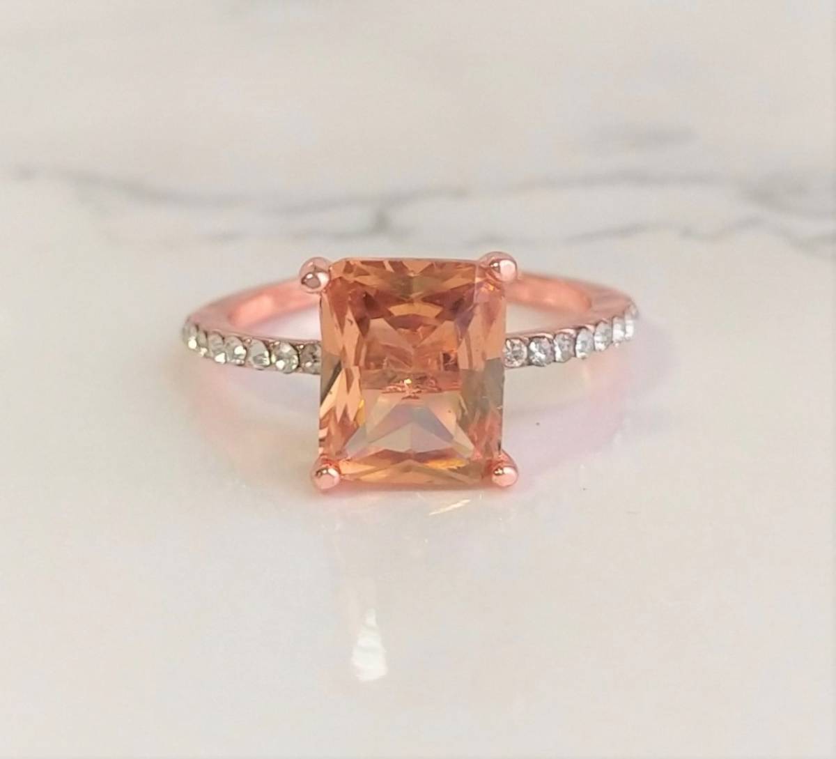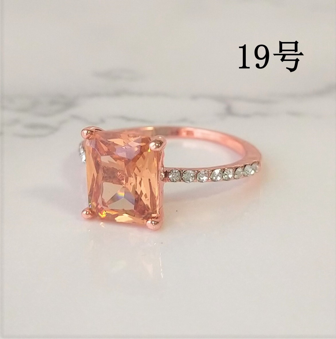スクエアリング ピンクゴールド 19号 ジルコニア 普段使い 指輪 メンズ スクエア リング パパラチアサファイアカラー