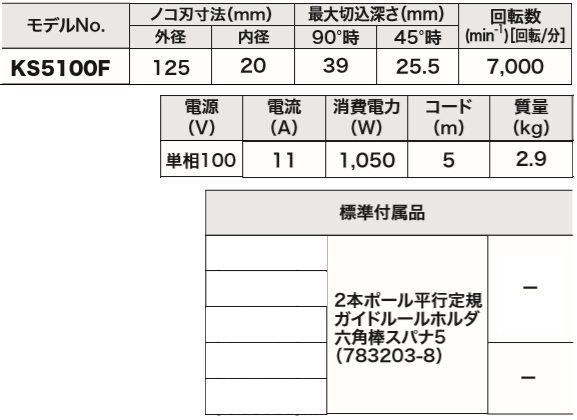 ■ノコ刃外径 125mm 最大切込深さ 39mm