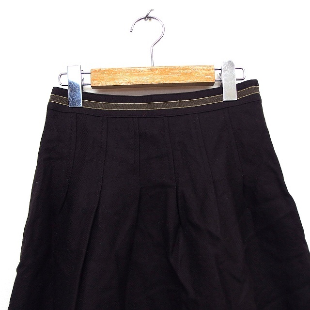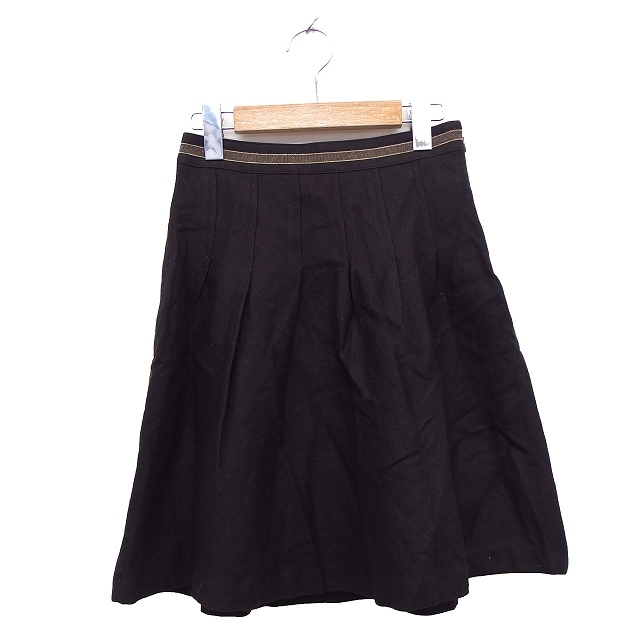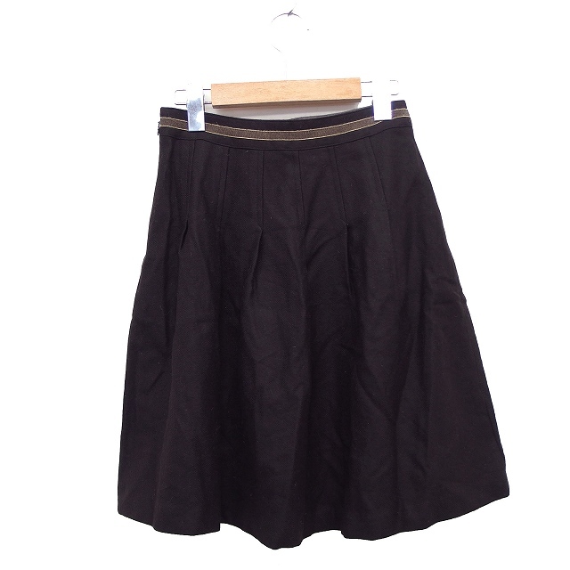 23区 オンワード樫山 フレア スカート ミニ 膝上 タック グログランテープ ウール 毛 30 ダークブラウン 茶 /HT21 レディース