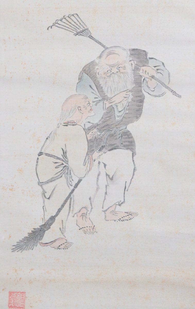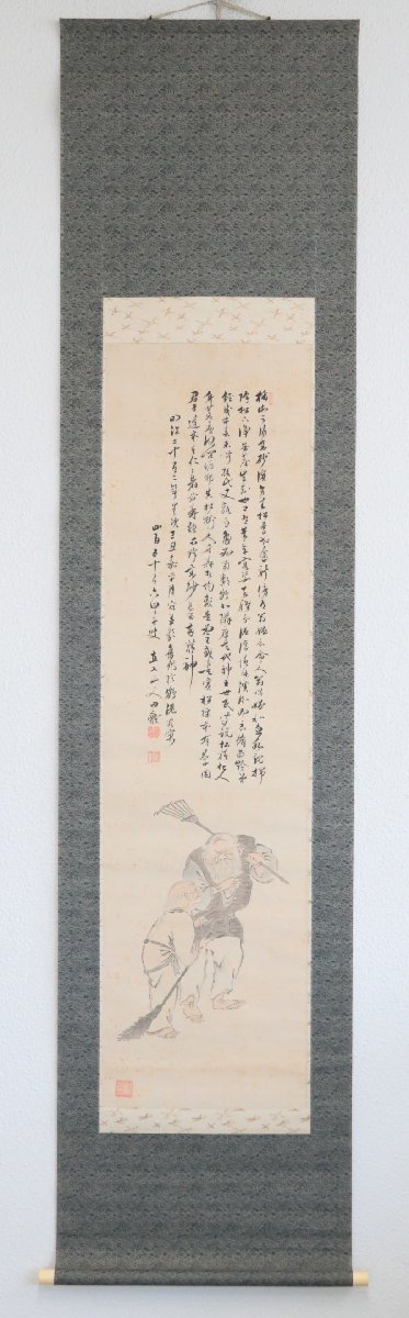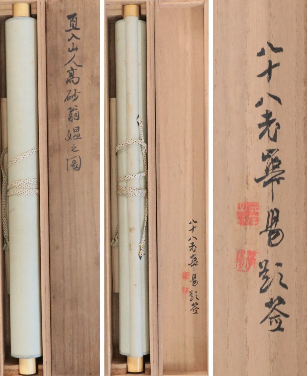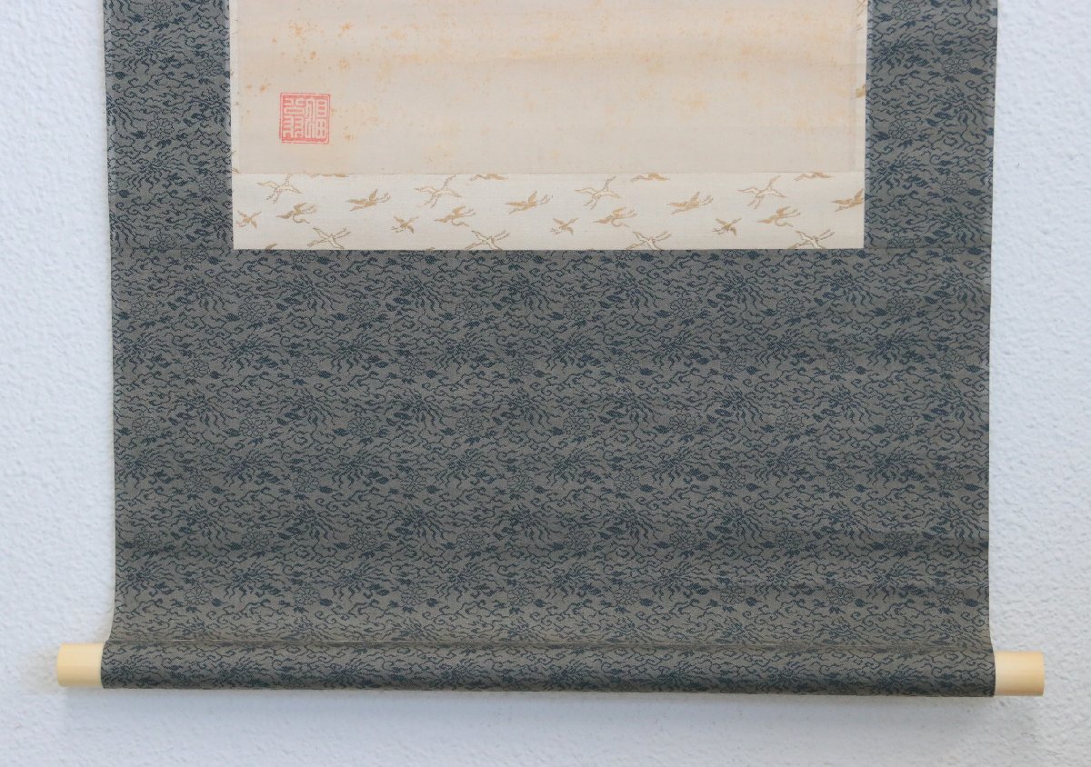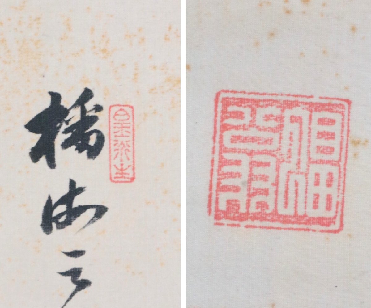 表記を十分ご確認の上、ご入札をお願いいたします。 ご不便をおかけいたしますが、どうぞよろしくお願いいたします。 本紙サイズ:横32.8×縦121cm 表装サイズ:横47×縦200cm 状態:古い物なので、軸にシミ、オレ、ヨゴレあります。木箱有、箱にヤケ、ヨゴレ、キズあります。長期保管品の為、軸先が取れる可能性があります。 田能村直入(1814~1907) 明治期の南画家。豊後国竹田(大分県竹田市)生まれ。本姓三宮、幼名松太のち伝太。9歳のとき、田能村竹田に入門し、南画と唐詩選を学ぶ。さらに国学、陽明学、武術などを幅広く修学、竹田にその才を愛され、田能村の姓を継いだ。竹田没後、南宗画で家を興し、堺、大坂に住む。明治1(1868)年京都に移り、以後名を小虎、号を直入とした。同13年京都府画学校設立とともに、翌年その初代摂理(校長)となり、24年には自ら自宅に南宗画学校を開いた。近代の南画は京都で継続的発展をみたが、直入はその明治期の中心的人物であった。 【印刷ではありません】 【真作保証】 -------------------------------------------- 2017年10月25日から施行される「絵画の出品に関するルール改定」により、特定の作者名のある作品につきましては、タイトルに【真作】又は【模写】と表記いたします。 【真作】は、真作と断定した作品 【模写】は、100%真作と断定できない作品 【印刷ではありません】と記載のある作品について 、墨または絵具で書かれた作品と保証するもので、万が一印刷、巧芸品の場合、返品に応じます。(落札後1ヶ月以内) 【真作保証】と記載のある作品について 、所定鑑定人のある作品について、鑑定が通らなかった場合、返品に応じます。(落札後2ヶ月以内) 鑑定料金諸費用、返品時送料等は落札者のご負担にてお願いします。 |