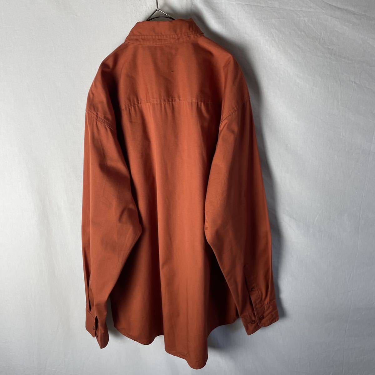 Edwards 長袖ボタンダウンシャツ 古着 Lサイズ オレンジ 刺繍ロゴ WORK WEAR
