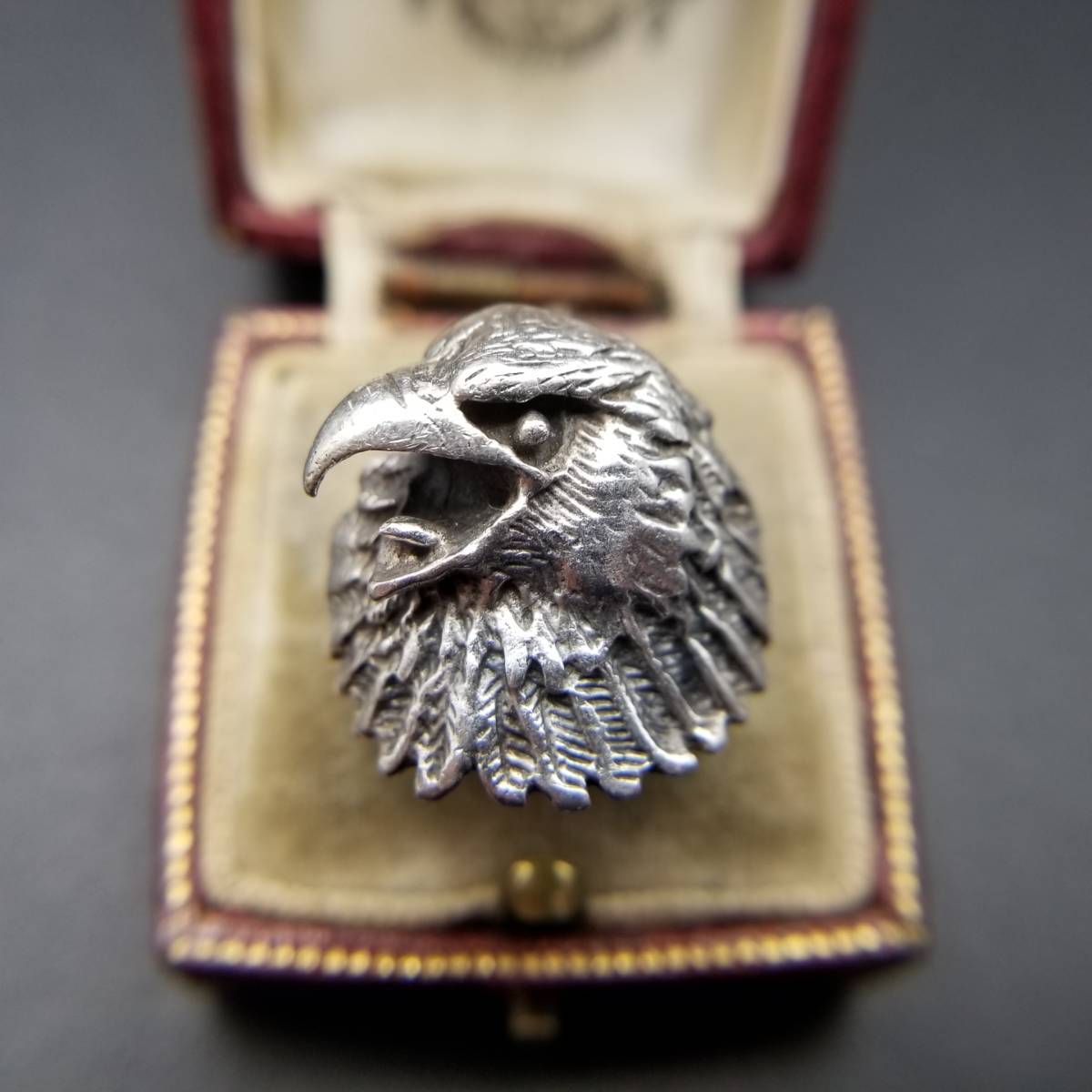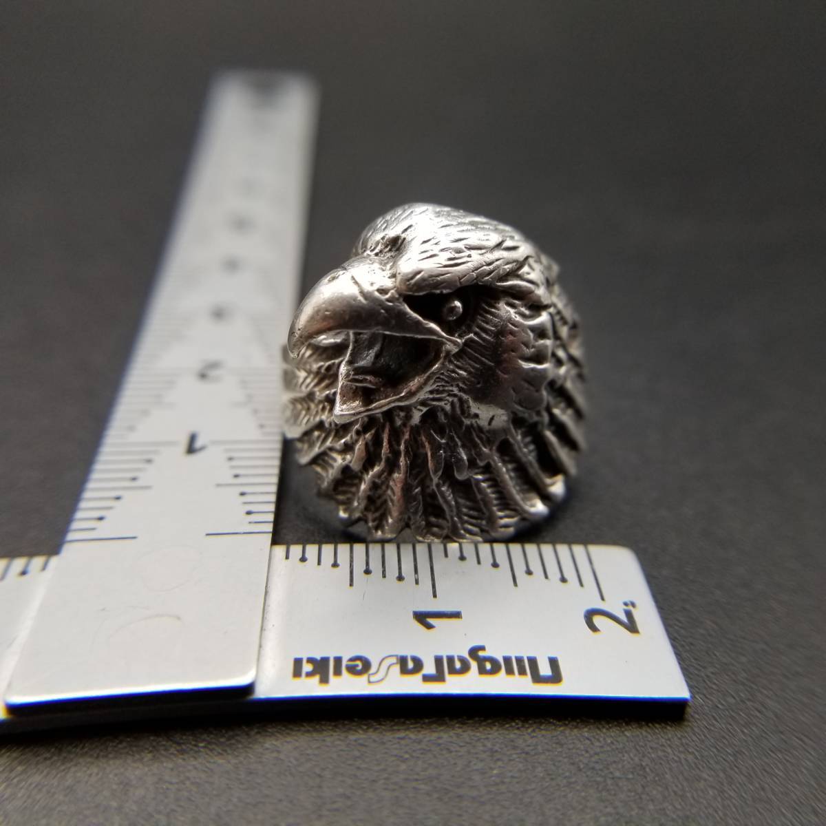 イーグル フェイス モチーフ 鷲 顔 立体 彫刻 925 存在感 大ぶり ヴィンテージ シルバー リング 指輪 ジュエリー 輸入 Y13-D