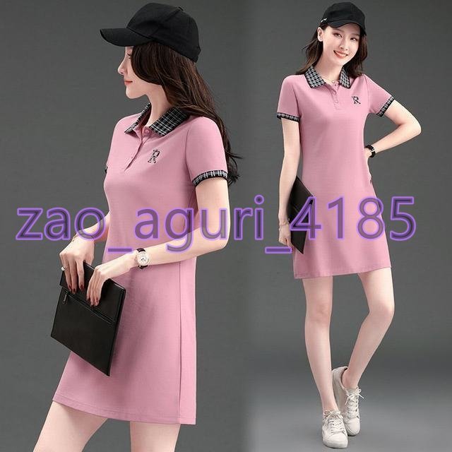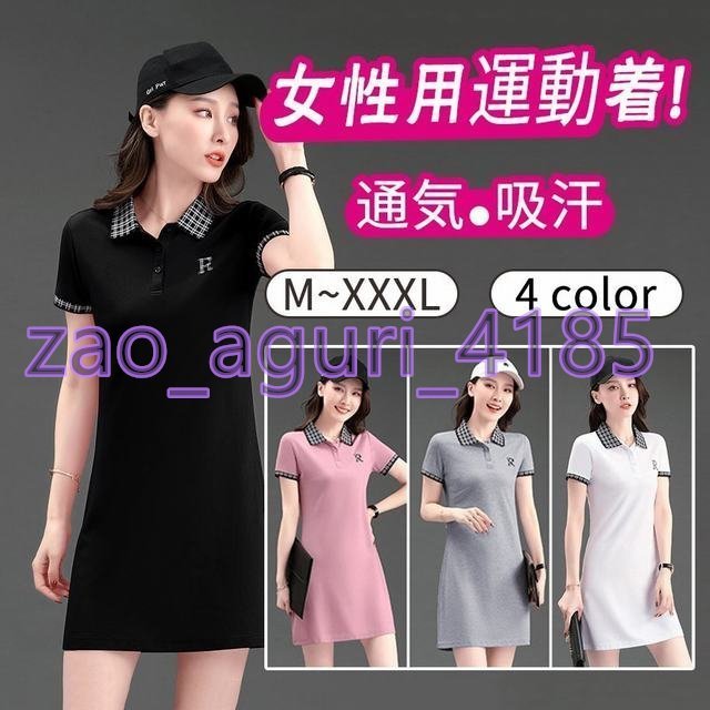 ワンピース 半袖 ゴルフ用 レディース ゴルフウェア テニスウェア スポーツウェア GOLF 夏 女の子 通気 吸汗 運動着ピンク