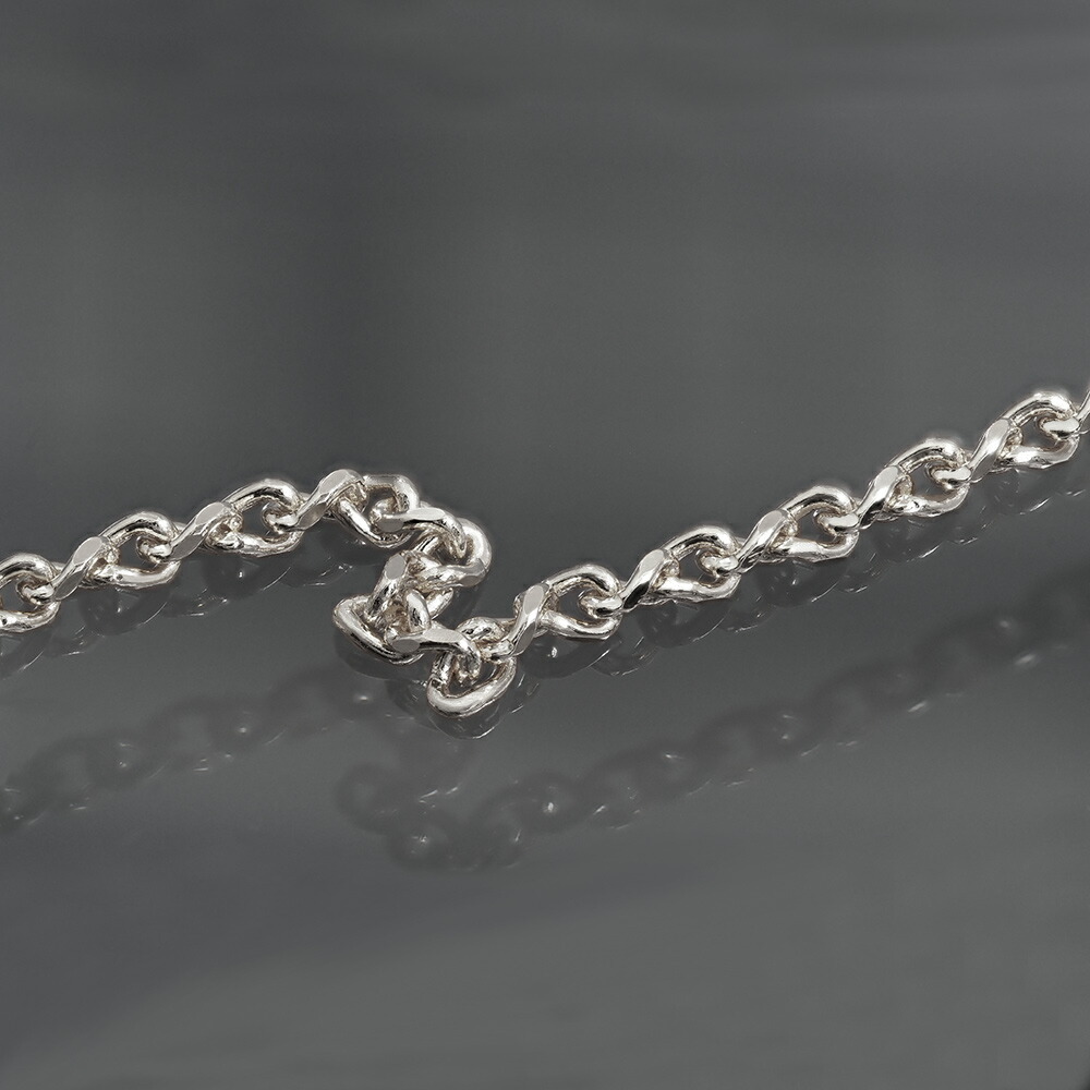 貴金属製チェーンについて チェーン(鎖)は、元々は1本の線材(針金状の材料)から作られているものが多く、一般的なチェーンの製造工程は、先ずその線材を適切な長さにカットし、それを曲げて輪にした後、輪の口を溶接して閉じます。そして次に作る輪は最初に作った輪に通しながら曲げて輪にし、やはり溶接で口を閉じます。この工程を繰り返す事によってアクセサリーとして十分な強度を持ったチェーンとなります。当店の貴金属チェーン製品の多くは、チェーンの先端の留め具付近に丸環と呼ばれる丸い輪のパーツが使用されておりますが、そのパーツの口も溶接で閉じられている為、大きな力が掛からない限りは切れにくい仕様となっております。しかしながら、細いチェーンに関しましてはその性質上、お取り扱いに十分ご注意下さい(貴金属は柔らかい金属です)。 ※溶接とは、金属同士を接合させる方法で、放電の際の熱を利用した電気溶接や、ガスバーナーを使ったロウ付け(ろう付け)が良く知られています。 |