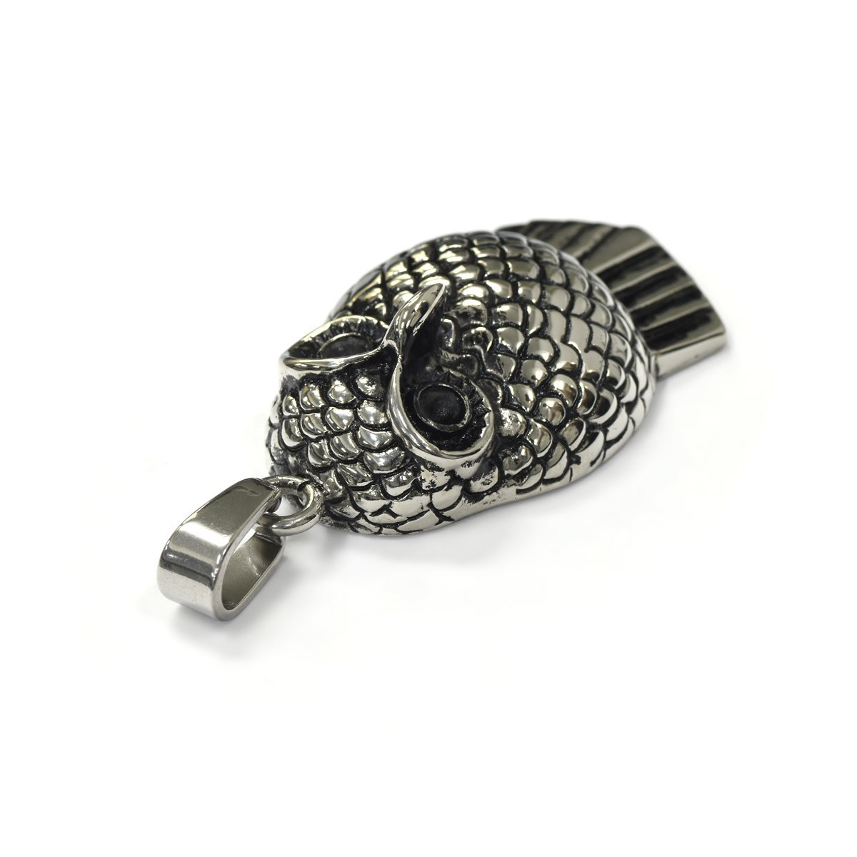 | 苦労を運び去り幸福を呼び込む『不苦労』の御利益があると言われる幸福の鳥・梟をモチーフにしました。フクロウグッズマニアにはたまりません!! 素材には本体・チェーン共に金属アレルギーに強いステンレスを使用。 |