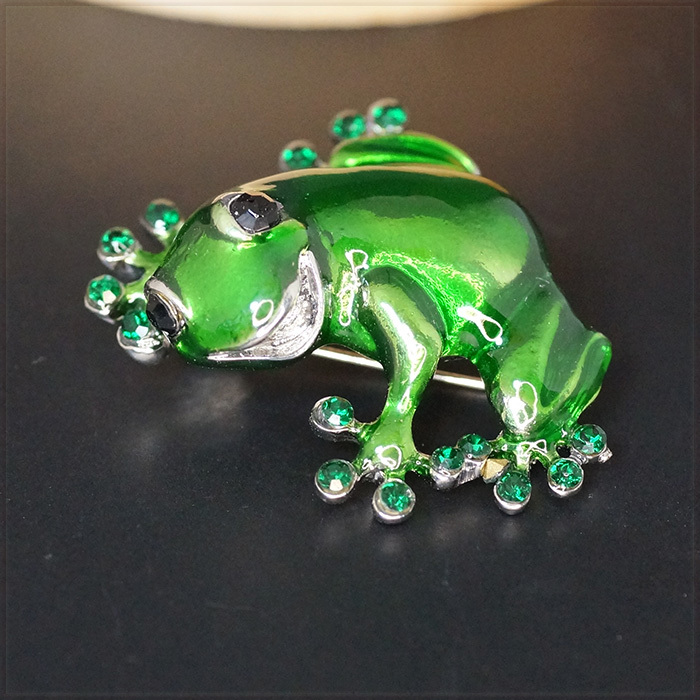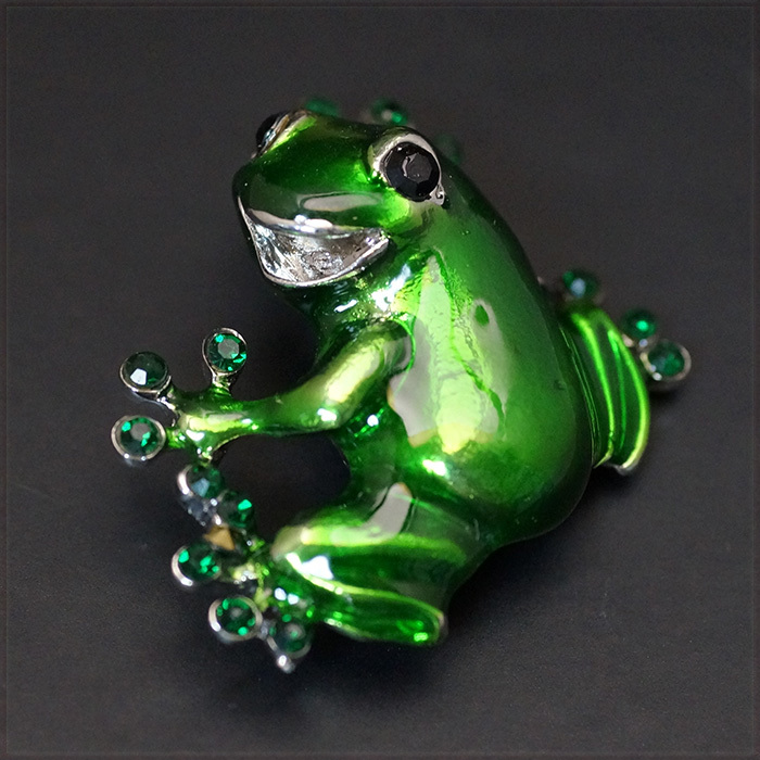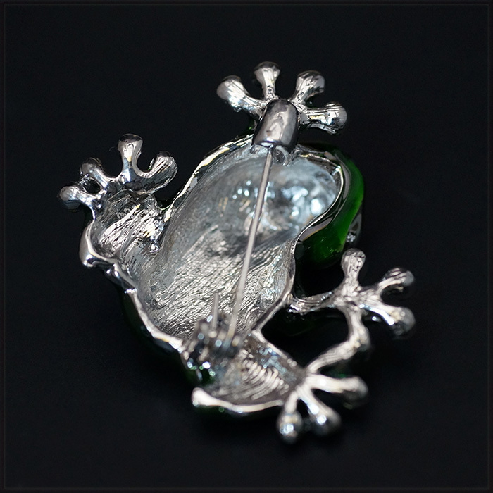 [BROOCH] Green Cute Frog シルバー エナメルグリーン ブラックCZ かわいい モリアオガエル 緑色のツリーフロッグ カエル 3.5cm ブローチ
