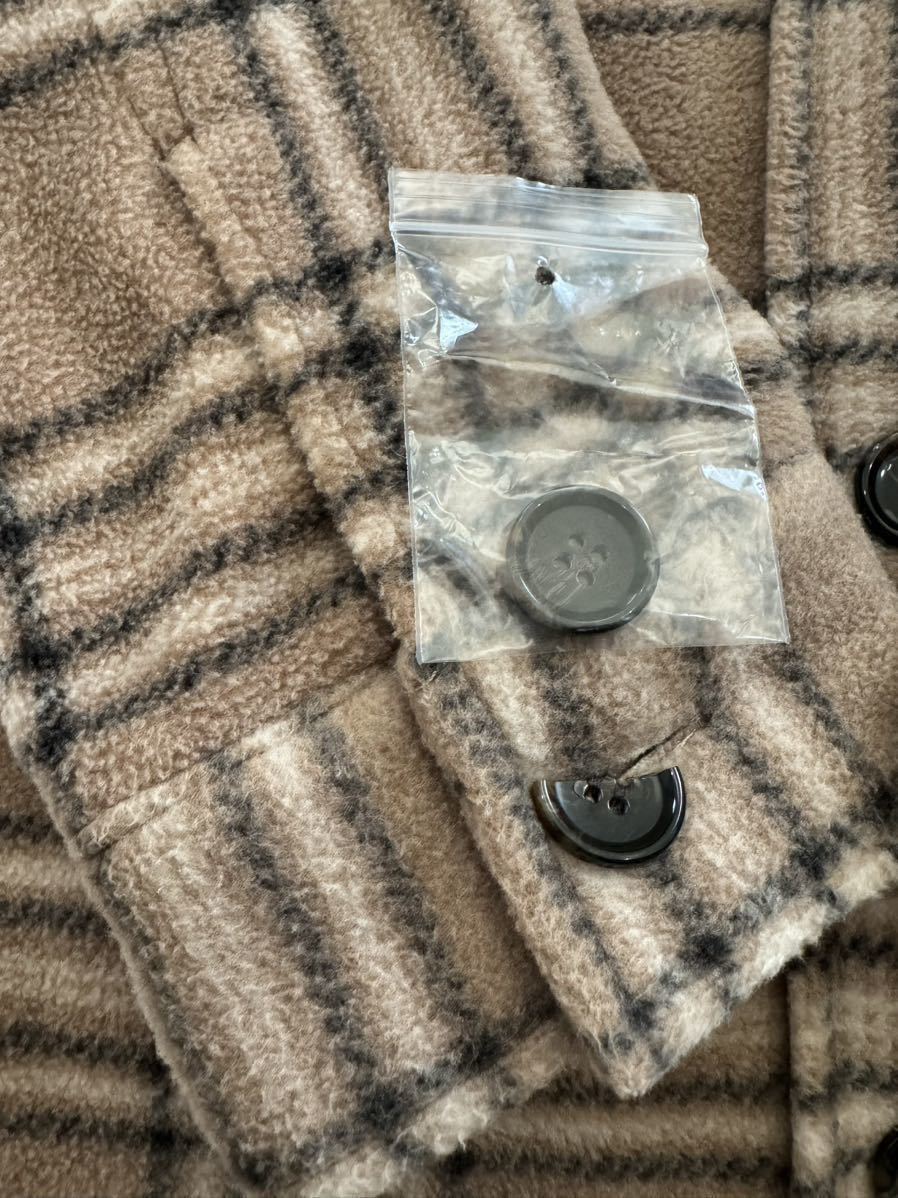 予備のボタンがありますので落札者様のほうで付け替えをお願いいたします。画像でご確認ください。