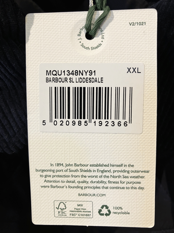 ご覧いただきありがとうございます。BARBOURのLIDDESDALE SLで新品未使用での出品となります。日本正規代理店ものです。