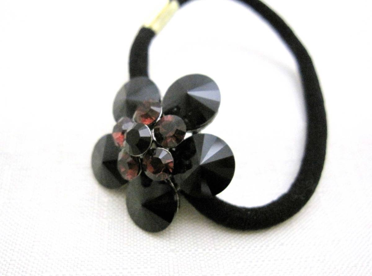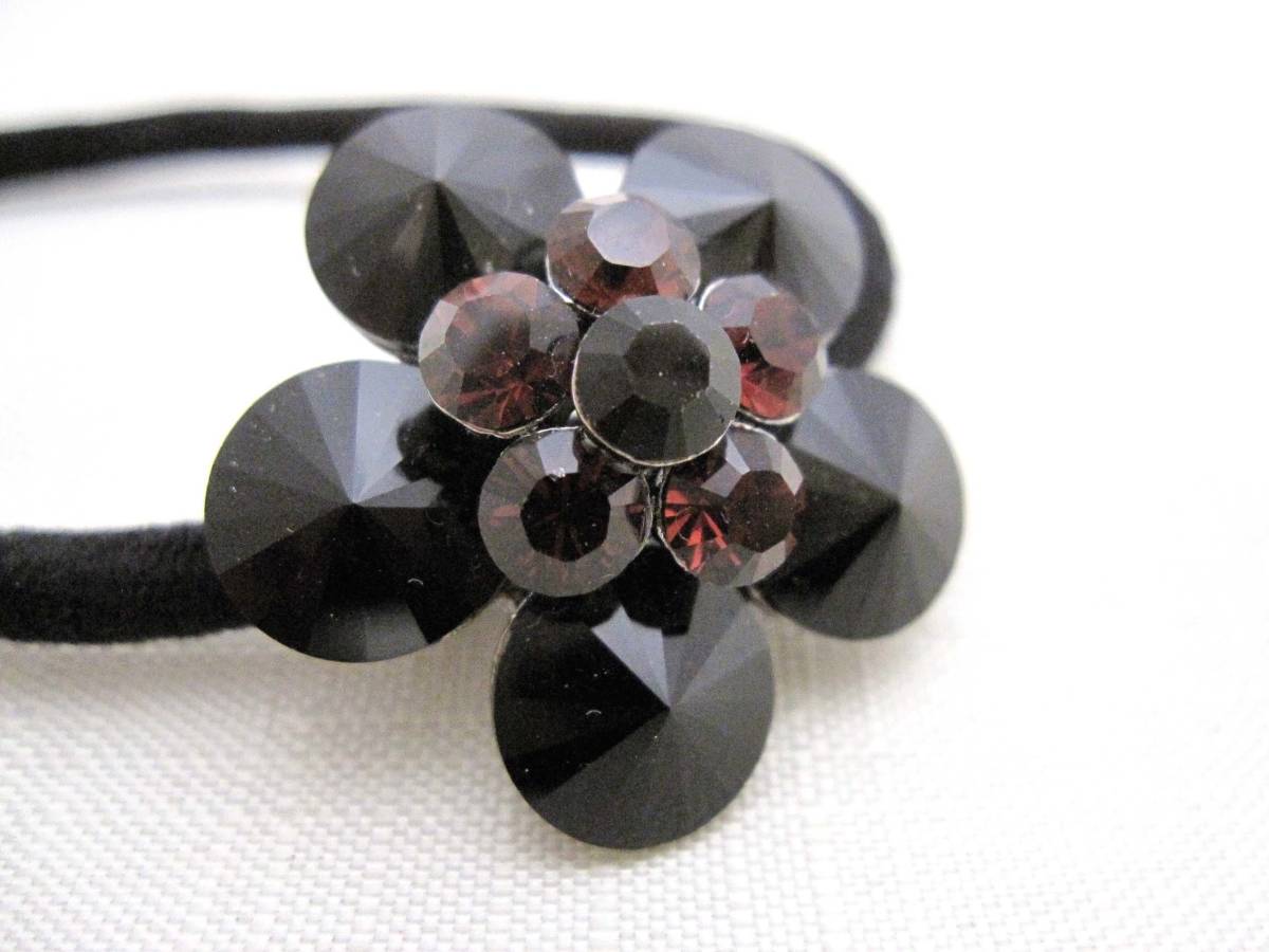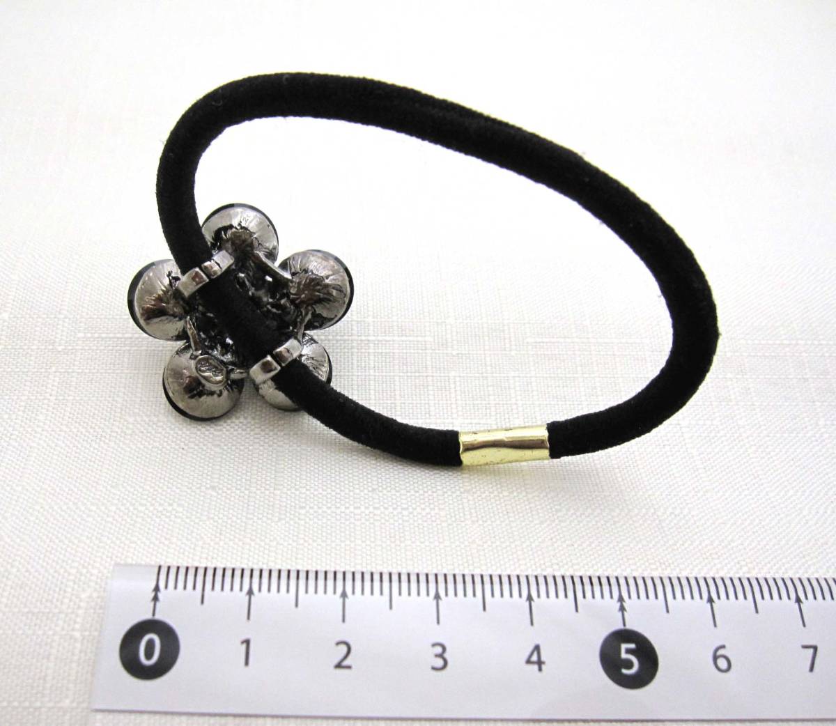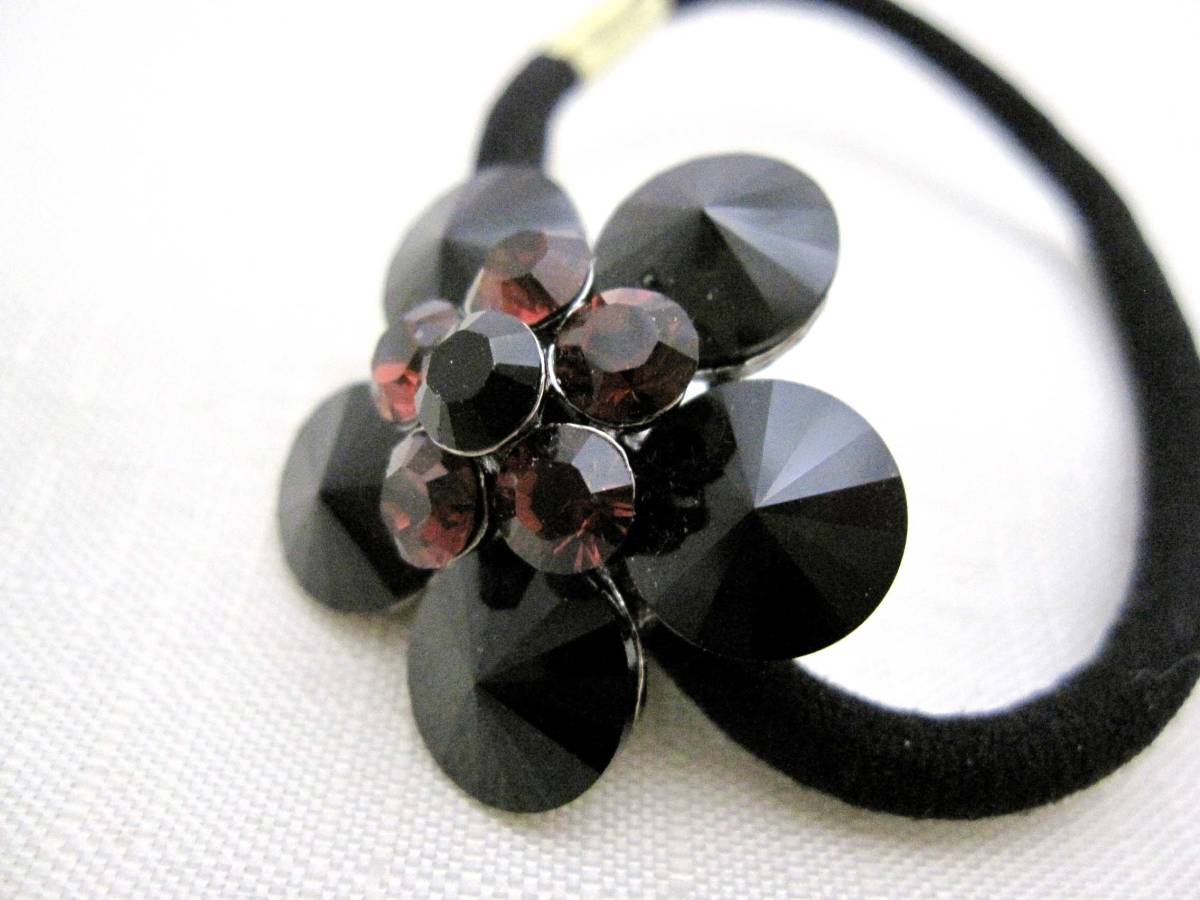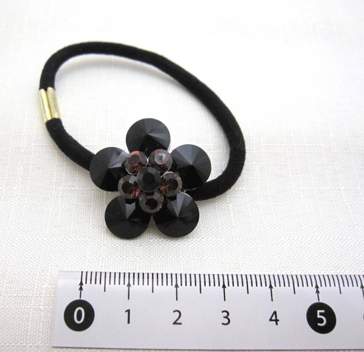 美品 ヘアゴム ブラック系 ヘアアクセサリー*きらきら*髪飾り*和装*女子会*夜会巻*大粒*カメリア<231106-7>