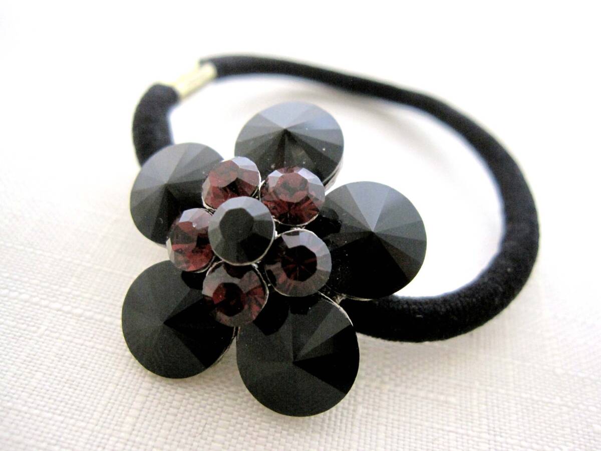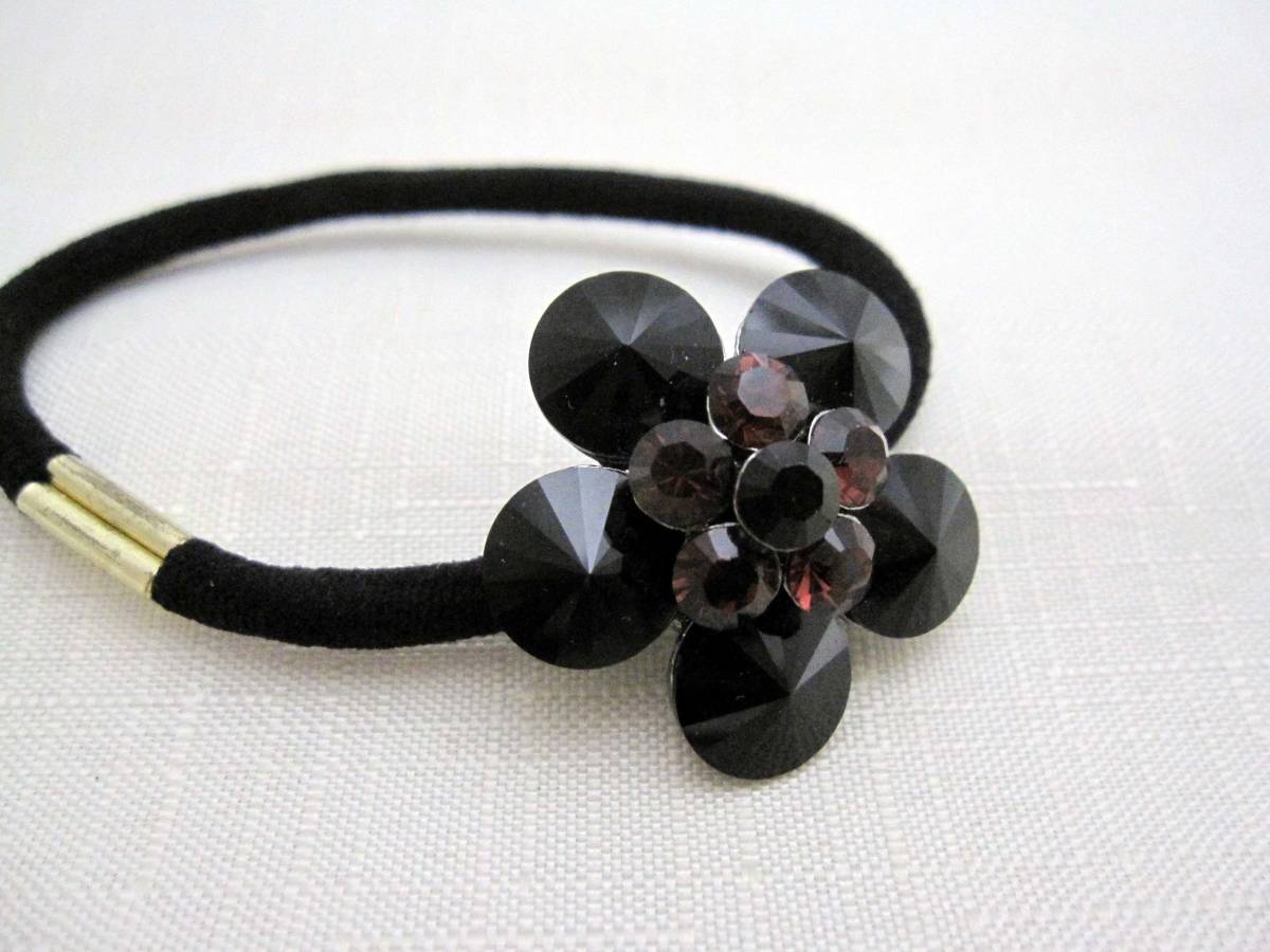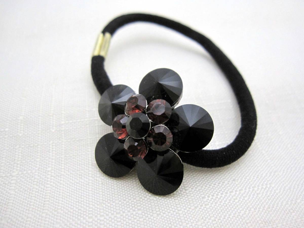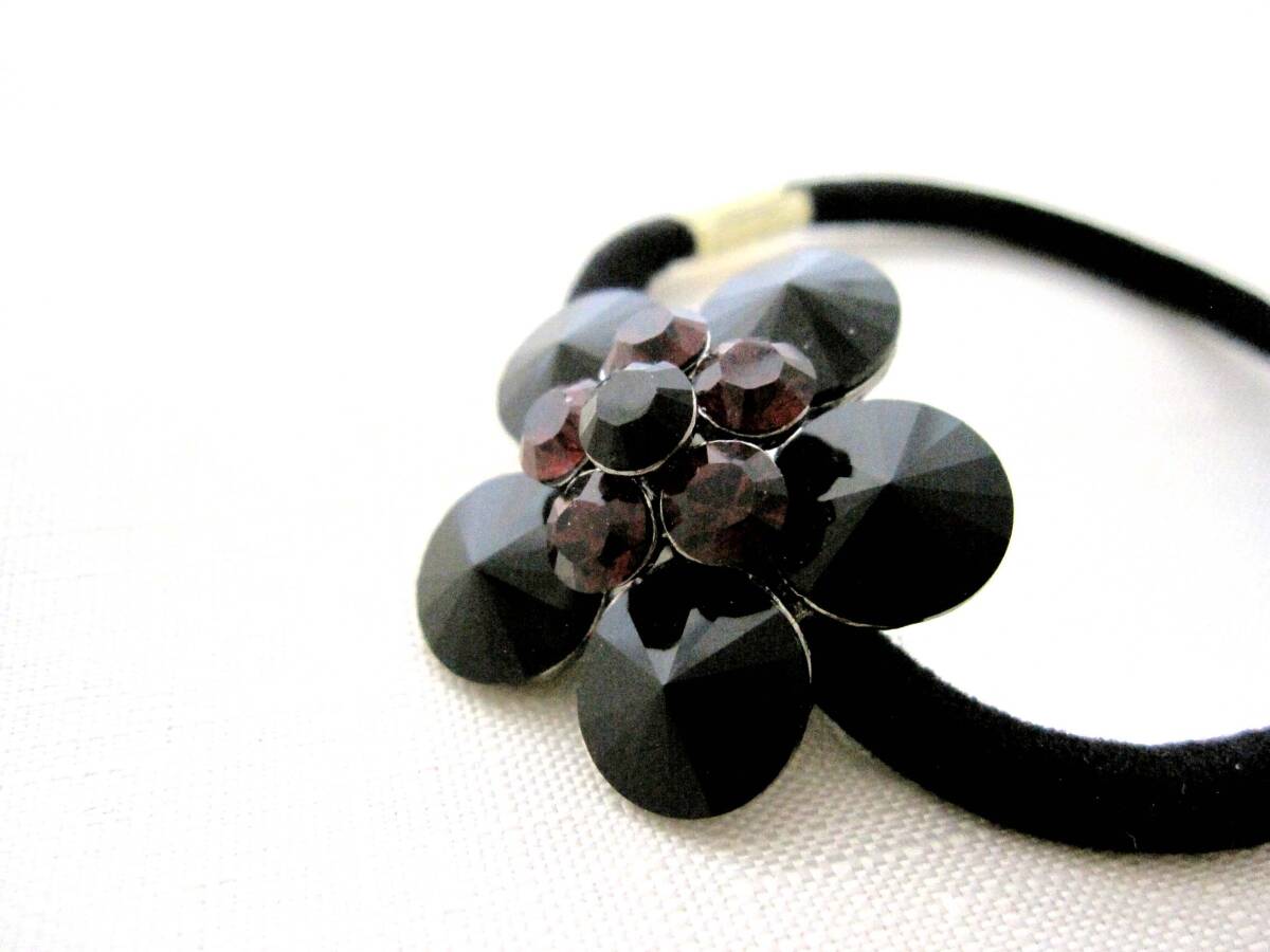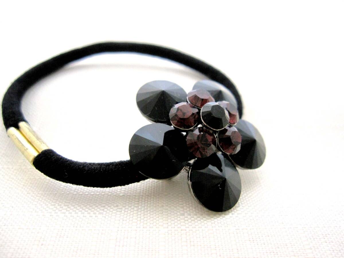 美品 ヘアゴム ブラック系 ヘアアクセサリー*きらきら*髪飾り*和装*女子会*夜会巻*大粒*カメリア<231106-7>