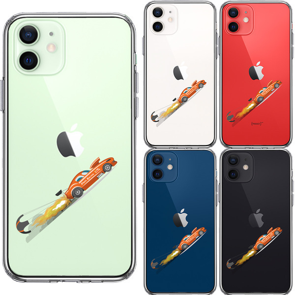 iPhone12mini ケース クリア レーシングカー 車 オレンジ スマホケース 側面ソフト 背面ハード ハイブリッド