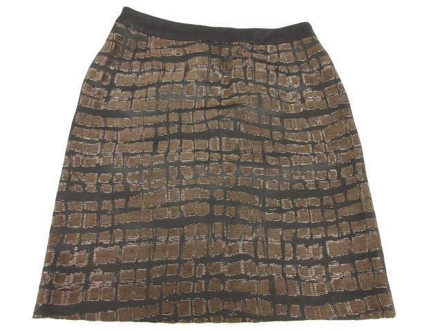 美品【デプレ DES PRES】 ジャガード織柄 タイトミニスカート (レディース) size0 ブラウン×ブラック系 ■5LF3467■