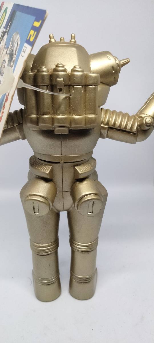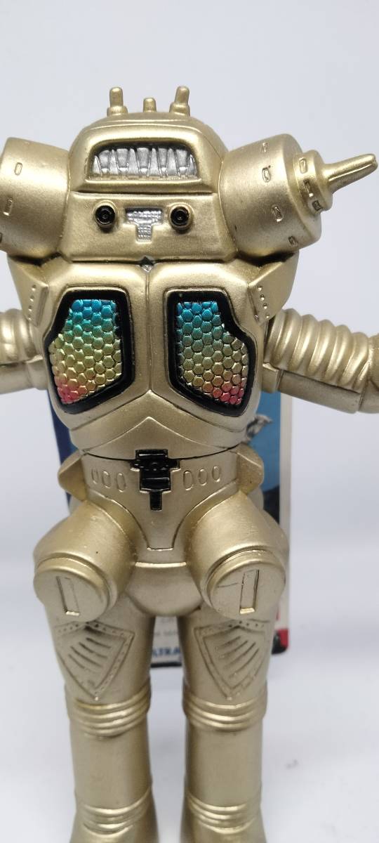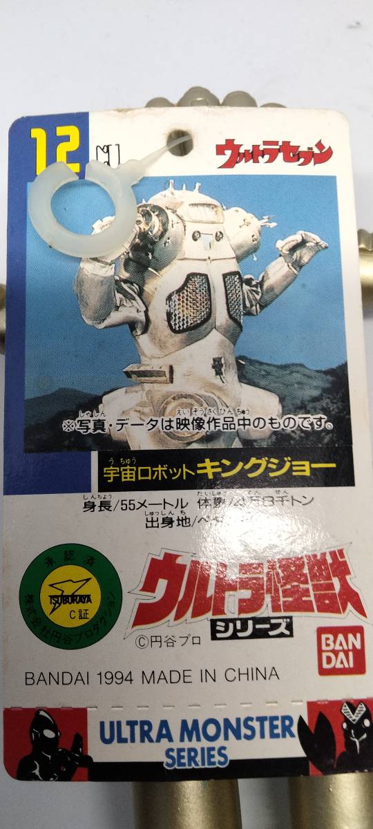 ウルトラセブンに登場した宇宙ロボットキングジョーのバンダイ製ソフビ。タグには「BANDAI 1994 MADE IN CHINA」と記載があります。直射日光の当たらないケースで保管していましたので変色や傷は見受けられません。ただし、タグの裏側が湿度の影響と思われるシミがあります。個々の写真を見て判断してください。 梱包は環境に配慮し、できるだけ安価で売却したいので使用された段ボールや折り込みチラシなどのリュース素材を使用して発送しますのでご了承下さい。 ご不明な点等があれば質問していただき、ご納得して入札をお願いします。
