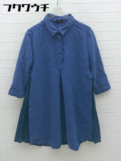 ◇ NINE ナイン 七分袖 膝丈 ワンピース サイズ0 ネイビー レディース