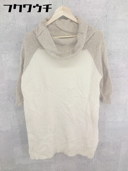 ◇ green label relaxing グリーンレーベル UNITED ARROWS ウール ニット オフタートルネック 七分袖 ミニ ワンピース ベージュ レディース