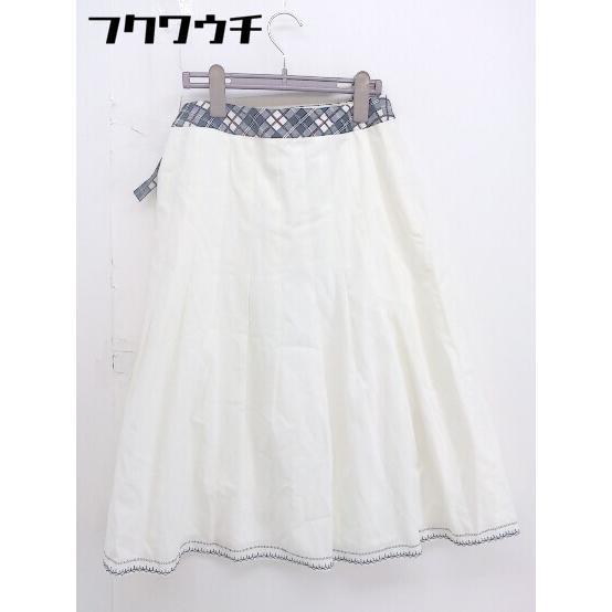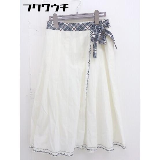 ◇ NEWYORKER 切替 刺繍 ウエストリボン 膝下丈 ラップ スカート サイズ9 アイボリー系 レディース