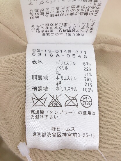 ■ Ray BEAMS レイビームス ボア ノーカラー 長袖 コート サイズ0 ベージュ系 レディース